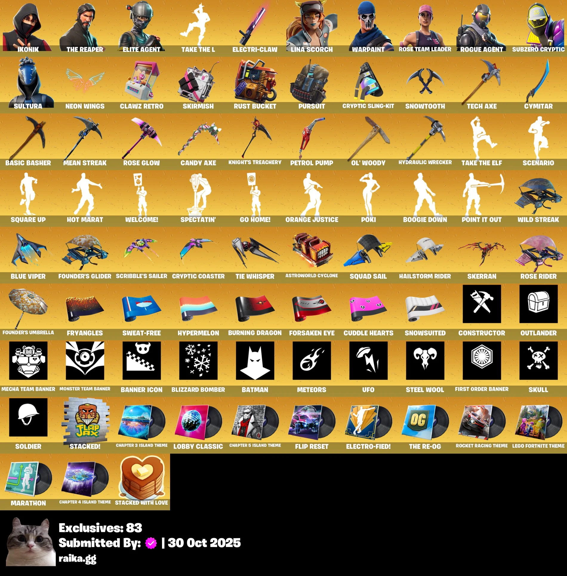 [PC/PSN/XBOX] 185 skins | OG STW | IKONIK | Wildcat Axe | The Reaper | Elite Agent | Lina Scorch | Rogue Agent | Subzero Cryptic | Sultura | Immortal Form | XEV | 4