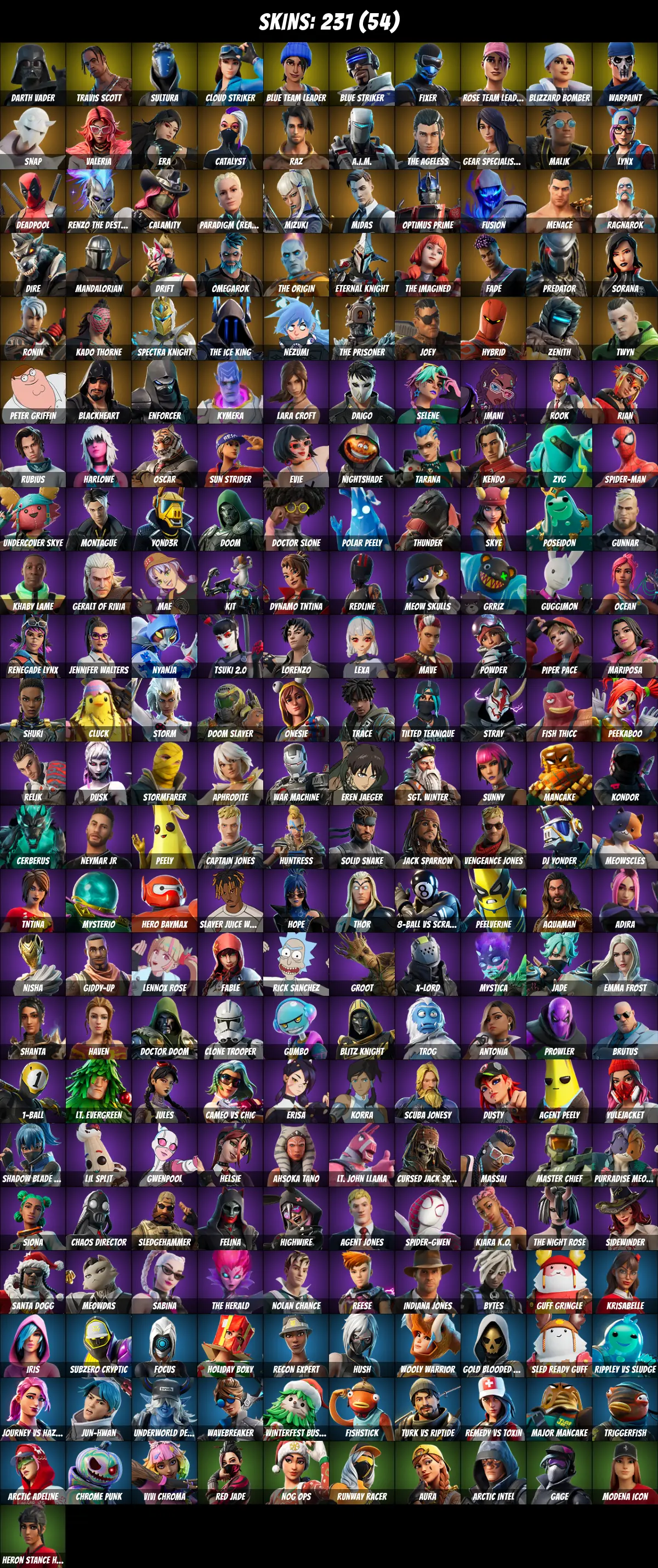 ⚡PC/PSN/XBOX⚡ 231 skins 💎 OG STW 💎 Travis Scott 💎 Rick Sanchez 💎 Drift 💎 Gwenpool 💎 Deadpool 💎 Lara Croft 💎 Midas 💎 Mandalorian 💎 Spider-Gwen 💎 Master Chief 💎 Darth Vader 💎 Lynx 💎 Jules 💎 Fishstick 💎 Aura 💎 Peely 💎 Sultura 💎 Cloud Striker 💎 950 V-Bucks 💎