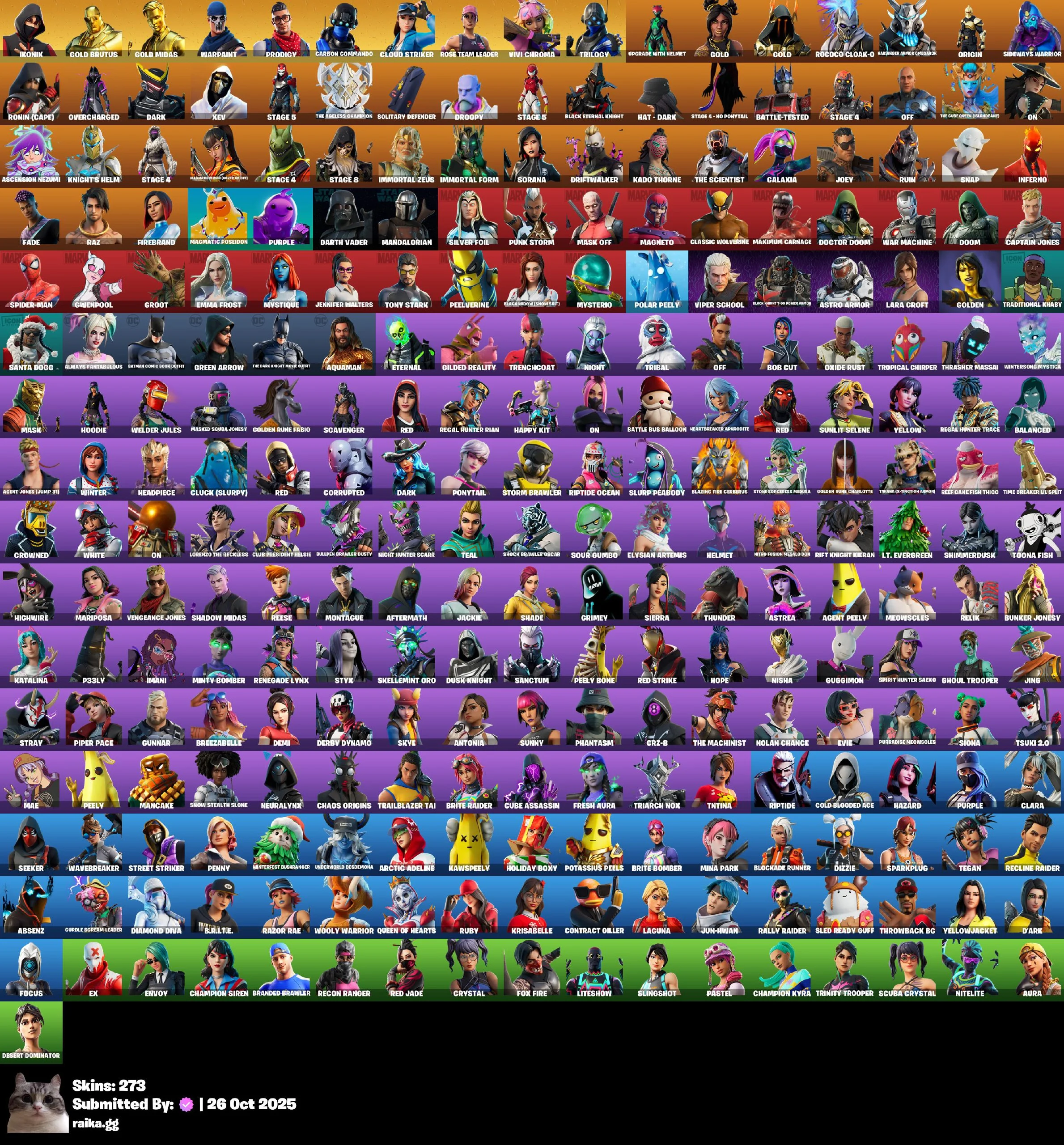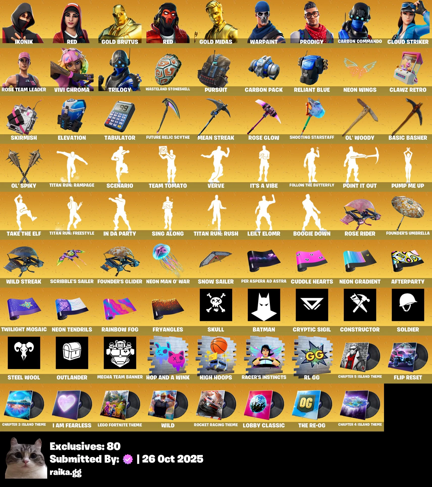 [PC/PSN/XBOX] 273 skins | OG STW | IKONIK | Gold Brutus | Gold Midas | Prodigy | Carbon Commando | Cloud Striker | Vivi Chroma | Trilogy | UPGRADE WIT