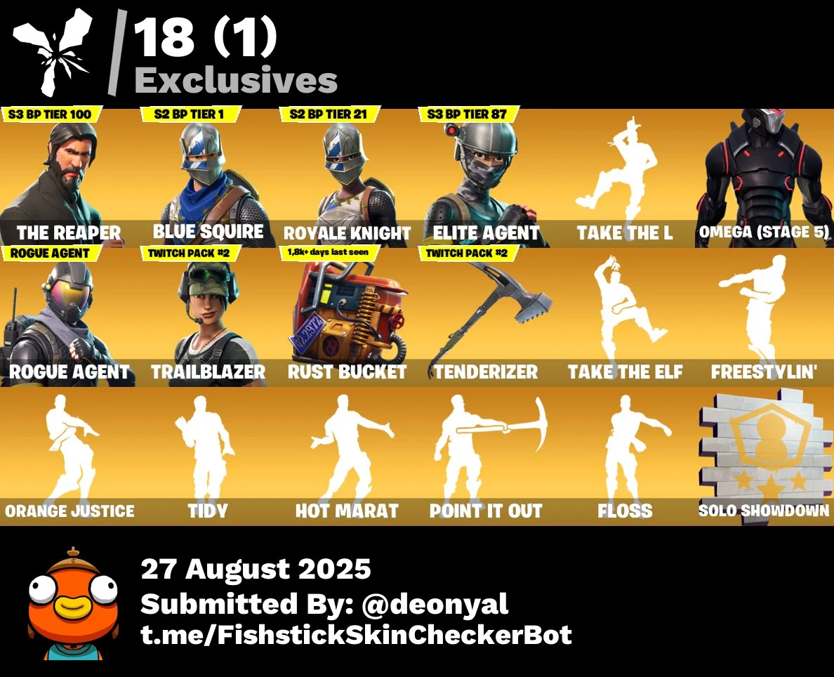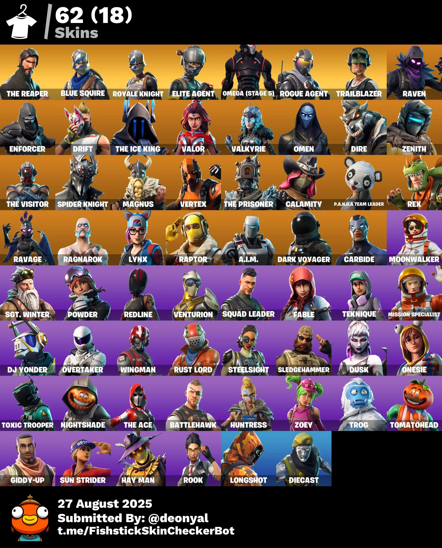 🌍 [PC/PSN/XBOX] 62 SKINS | Floss, The Reaper, Blue Squire, Royale Knight, Elite Agent, Omega (stage 5), Take The L, Rogue Agent, Trailblazer, Carbide, Spider Knight, Calamity, Enforcer, Drift, Raven, Point It Out, Lynx, Orange Justice, Tidy