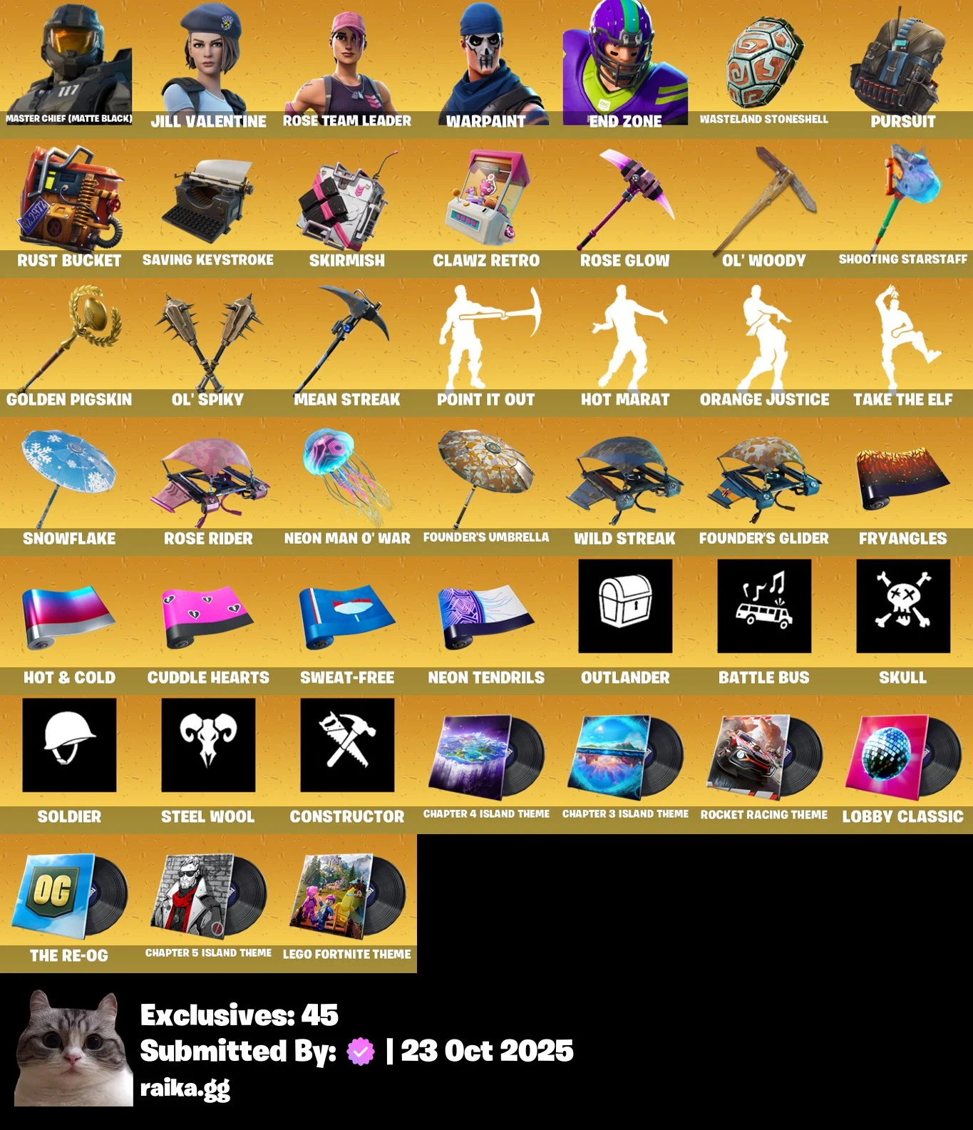 [PC/PSN/XBOX] 86 skins | OG STW | Master Chief (Matte Black) | Jill Valentine | End Zone | STAGE 5 | Gold | STAGE 5 | STAGE 4 | BLACK WEREWOLF | STAGE