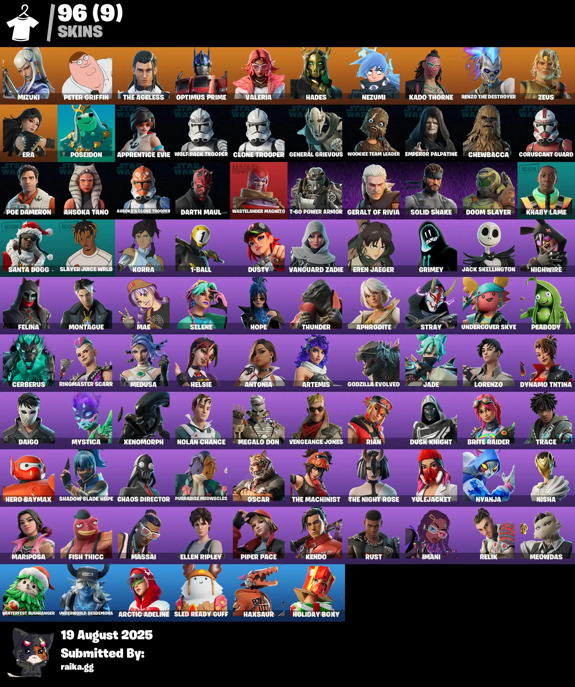 [PC/PSN/XBOX] 96 skins | Mizuki | Peter Griffin | The Ageless | Optimus Prime | Valeria | Hades | Nezumi | Kado Thorne | Renzo the Destroyer | Zeus | Era | 1850 VB