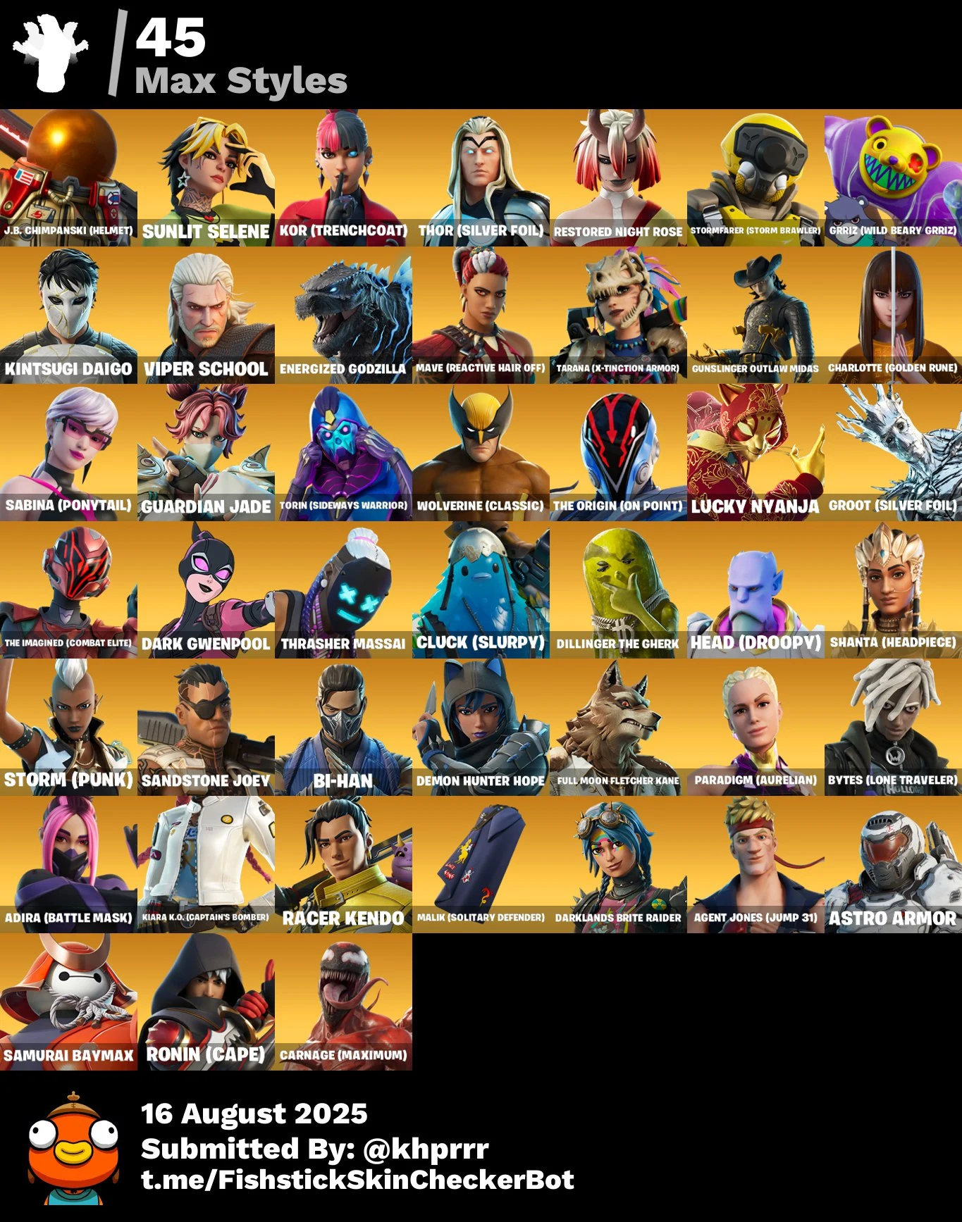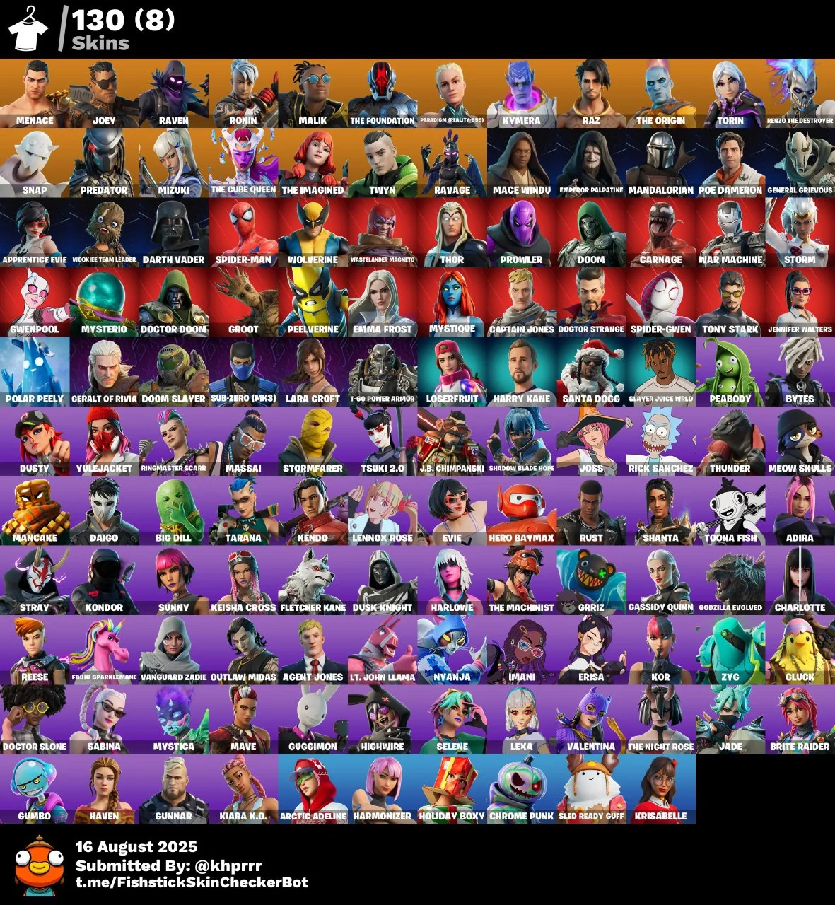 [PC/PSN/XBOX/Nintendo] 130 skins F/A : | Menace | Joey | Raven | Ronin | Malik | The Foundation | Paradigm (Reality-659) | Kymera | Raz | The Origin | Torin