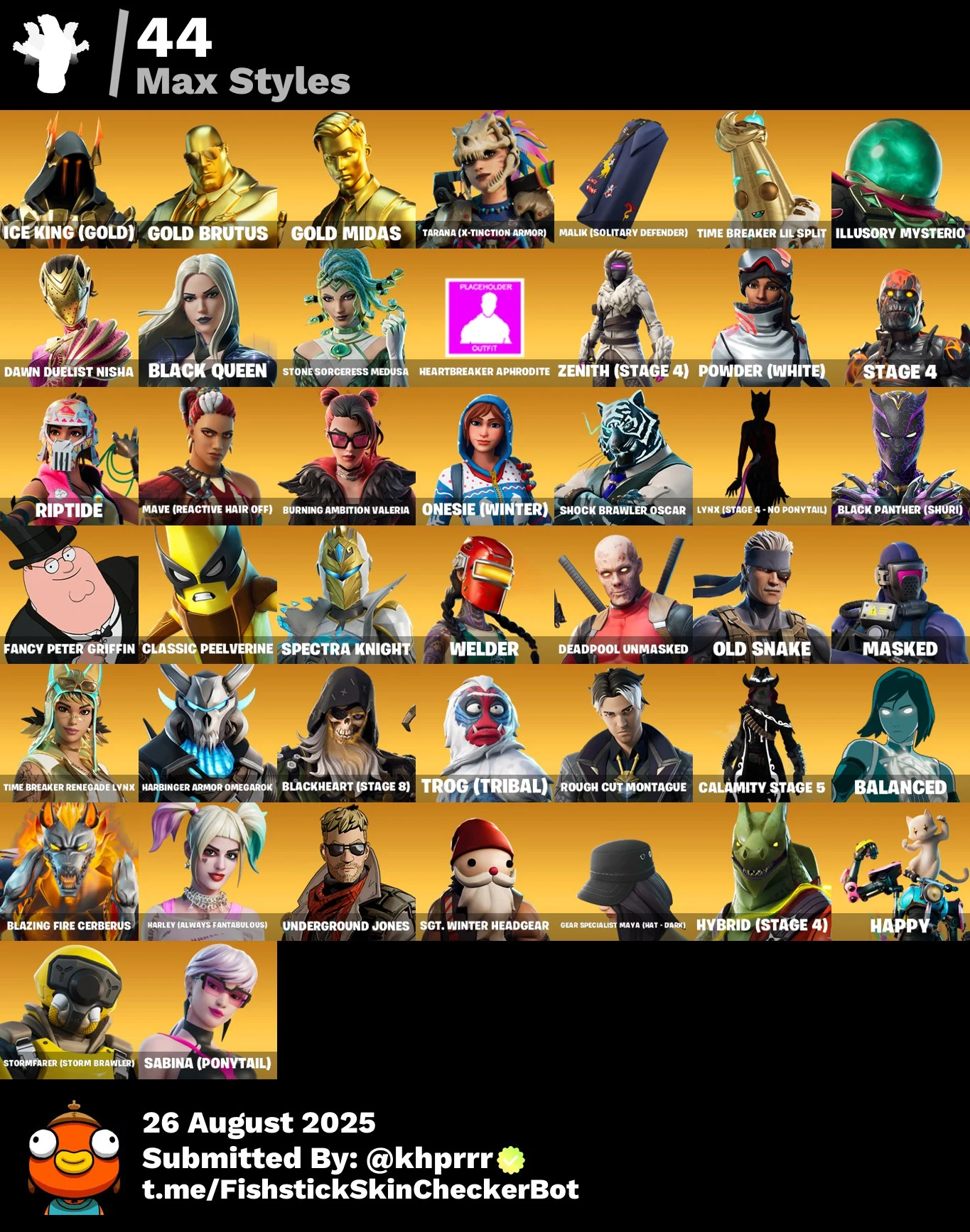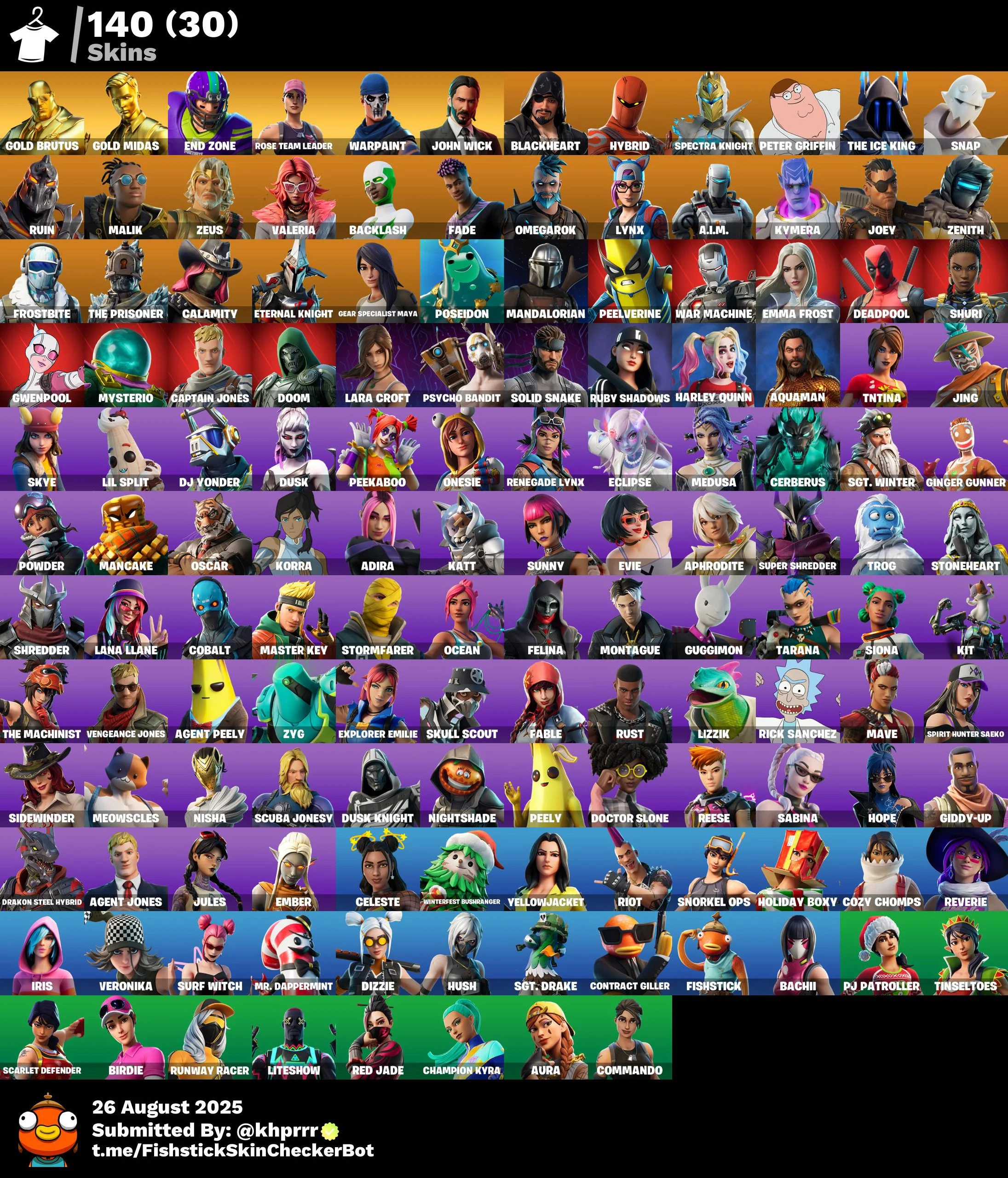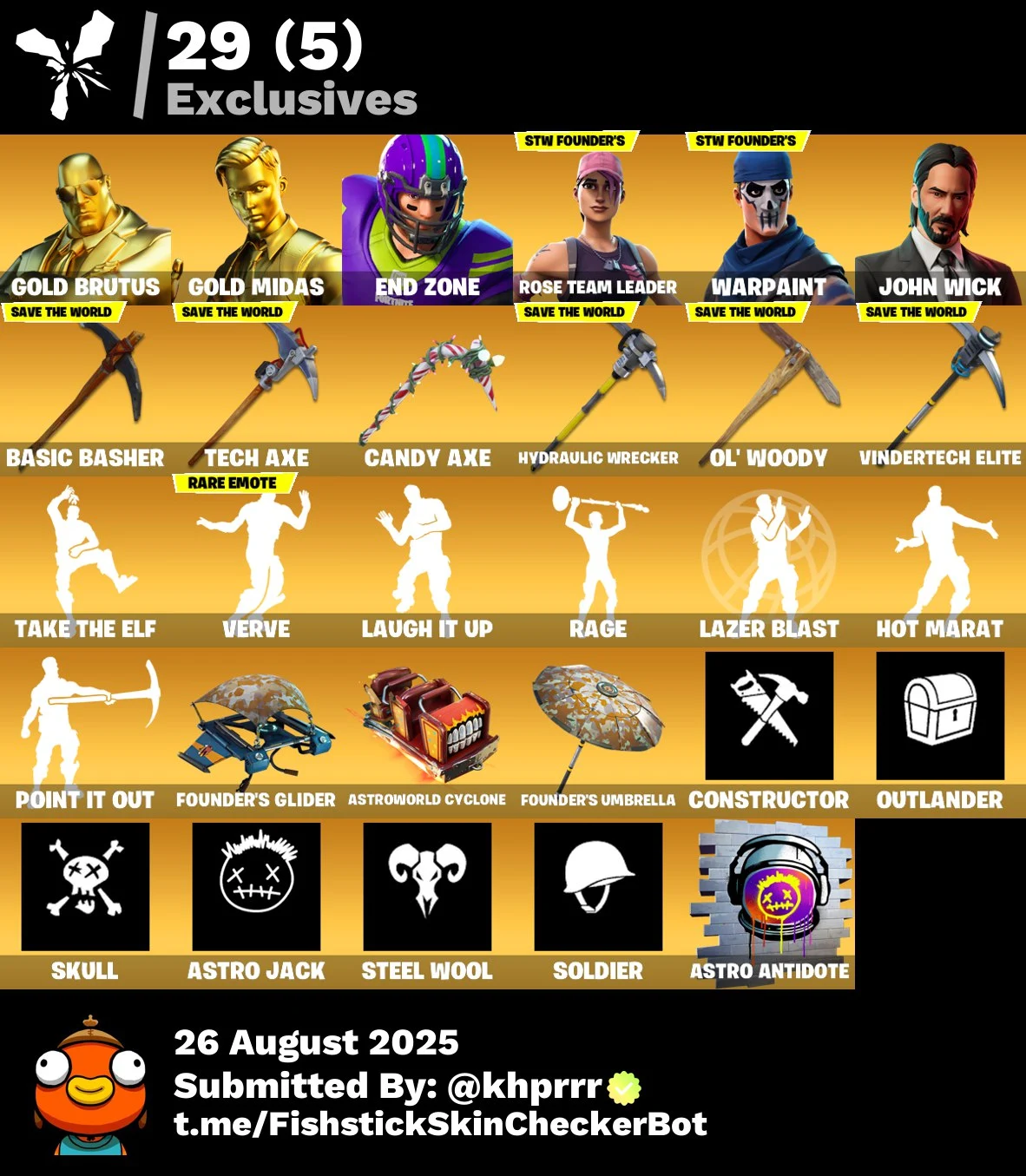 *[PC/PSN/XBOX/Nintendo] 140 skins F/A : Psycho Bandit | OG STW | Gold Brutus | Gold Midas | End Zone | John Wick | Blackheart | Hybrid | Spectra Knight | Peter Griffin | The Ice King | Snap |