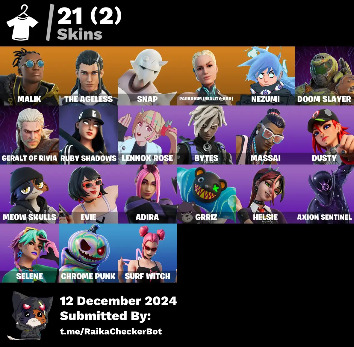 [PC/PSN/XBOX/SWITCH] 21 Skins | Malik | Ageless | Nezumi | Doom Slayer | Geralt | Ruby Shadows | Bytes | MCF197