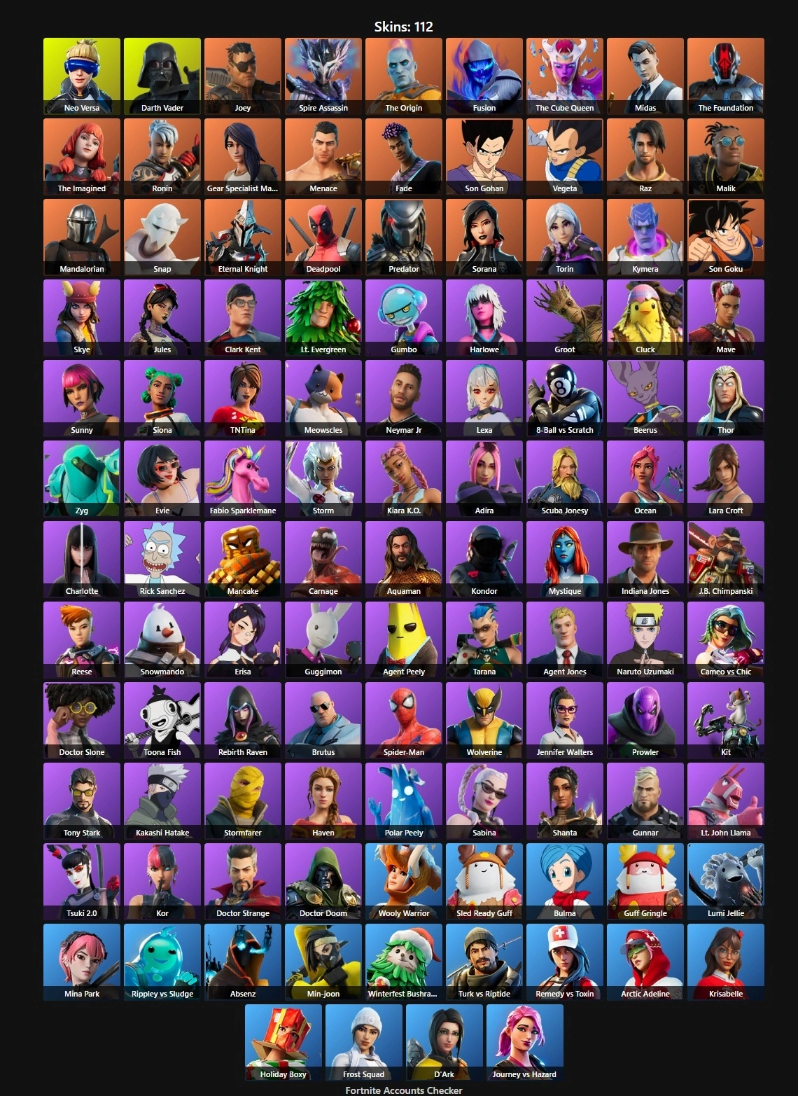 PC/XBOX 112 Skins⚡ | Darth Vader | Midas | Deadpool | Lara Croft | Neo Versa | Joey | Spire Assassin | The Origin | Fusion | The Cube Queen | The Foundation