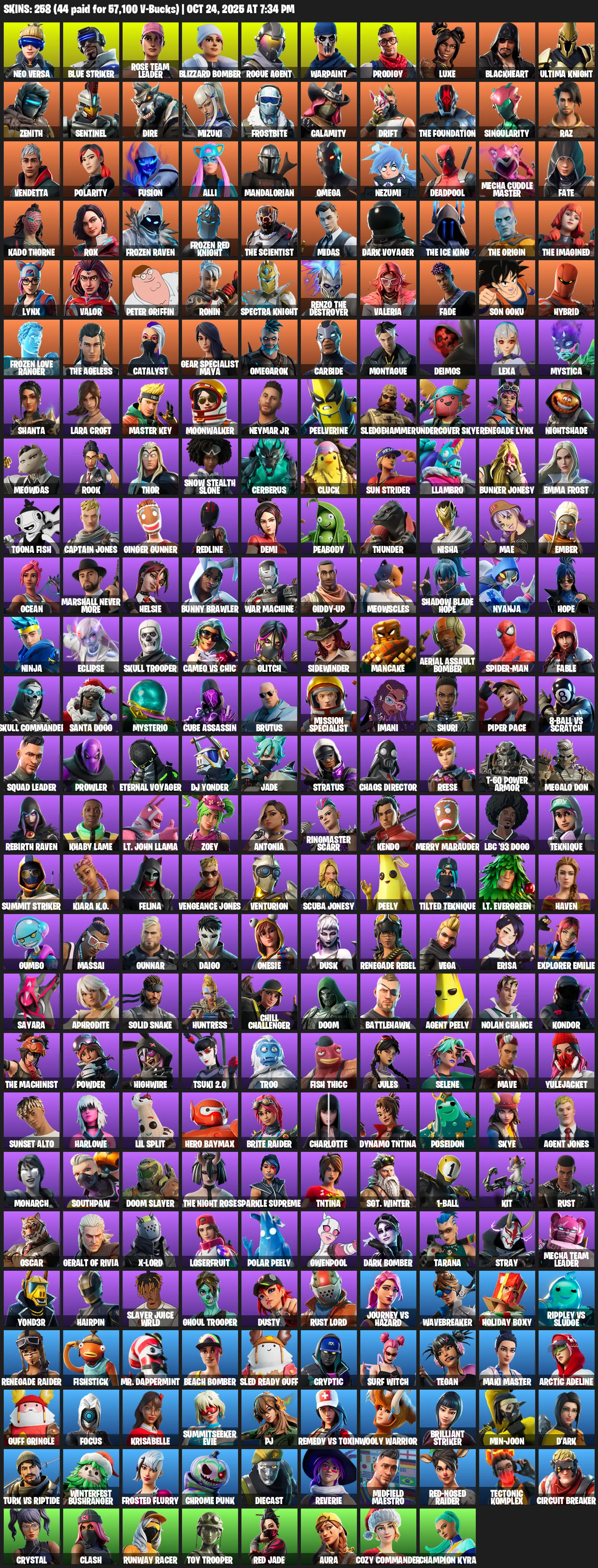 [PC/XBOX] | 258 skins | Leviathan Axe | Take The L | OG STW | Renegade Raider | Omega | Lara Croft | Neo Versa | Blue Striker | #ZCK4333 | #MBFN