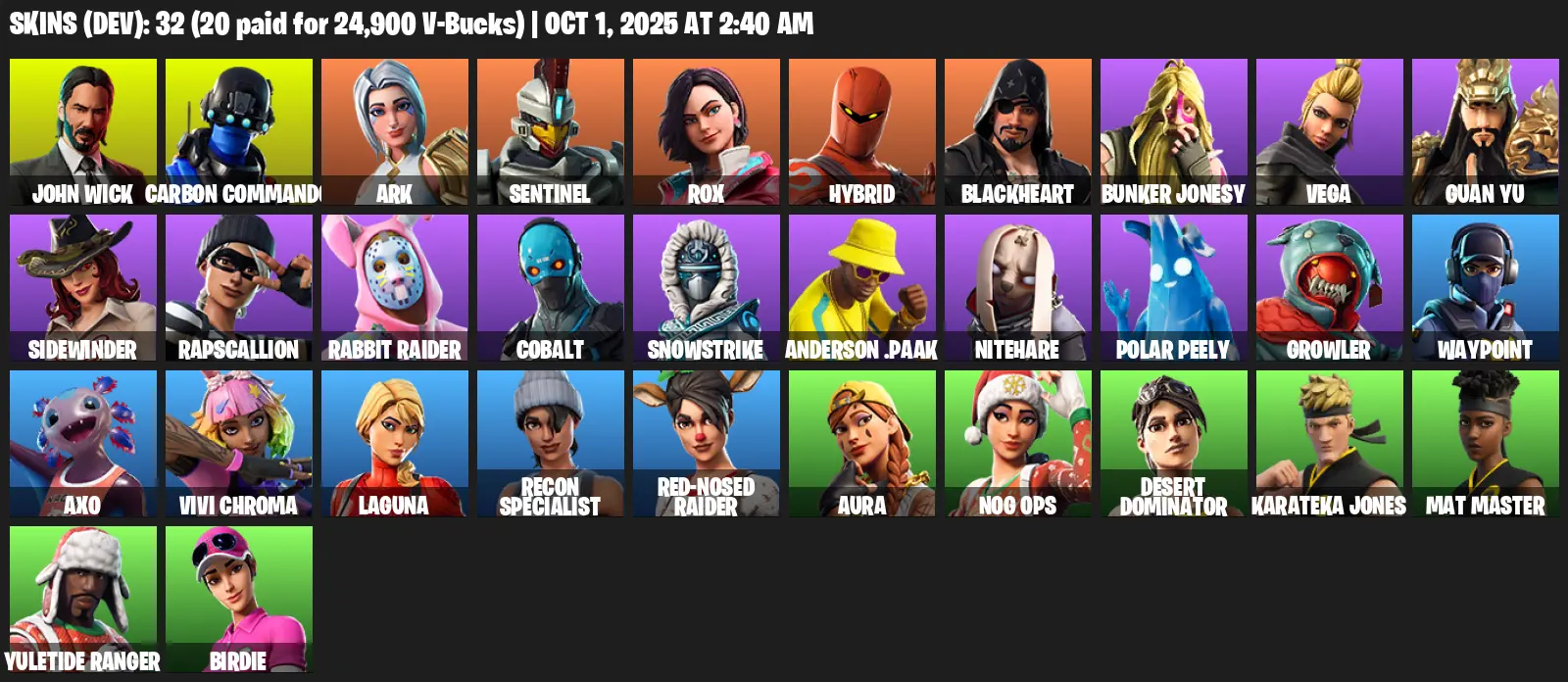 PC/XBOX 32 Skins⚡ | John Wick | Carbon Commando | Ark | Sentinel | Rox | Hybrid | Blackheart | Bunker Jonesy | Vega | Guan Yu | Sidewinder | Rapscallion