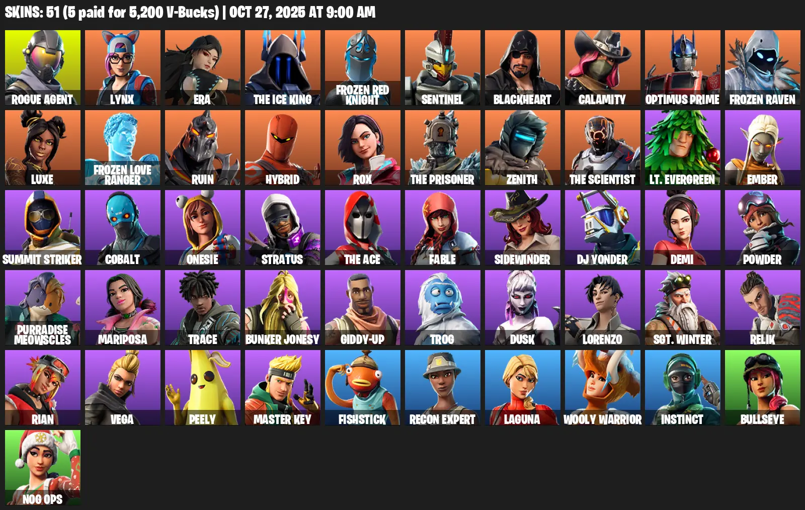 [PC/XBOX] | 51 skins | Rogue Agent | Lynx | Era | The Ice King | Frozen Red Knight | Sentinel | Blackheart | Calamity | #ONW1115 | #MBFN