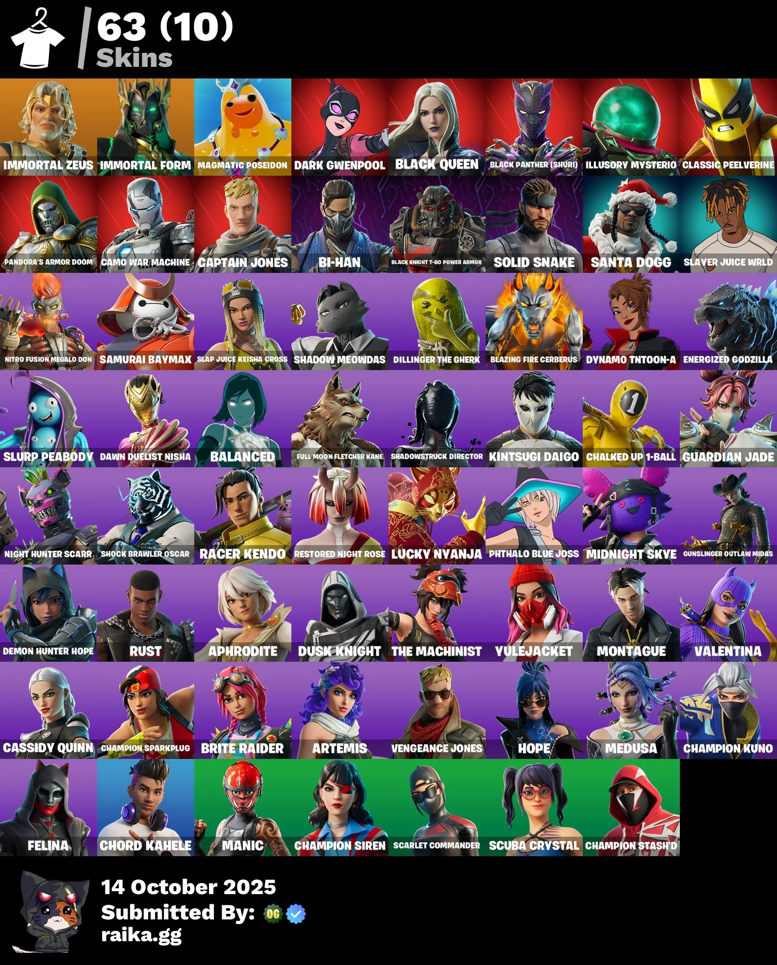 [PC/XBOX] 63 skins | Champion Kuno | Star Wand | Immortal Zeus | Immortal Form | Magmatic Poseidon lai666
