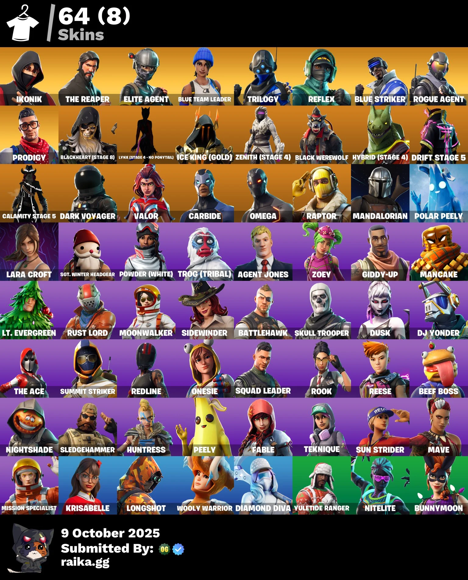 🔥 [PC/XBOX] 64 skins | IKONIK | The Reaper | Take The L | Elite Agent | Lara Croft | Peely | Omega | Mandalorian lai074