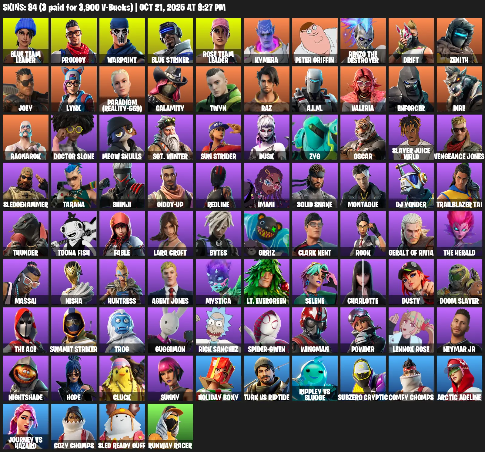 [PC/XBOX] | 84 skins | OG STW | Lara Croft | Blue Team Leader | Prodigy | Warpaint | Blue Striker | Rose Team Leader | Kymera | #RXD8090 | #MBFN