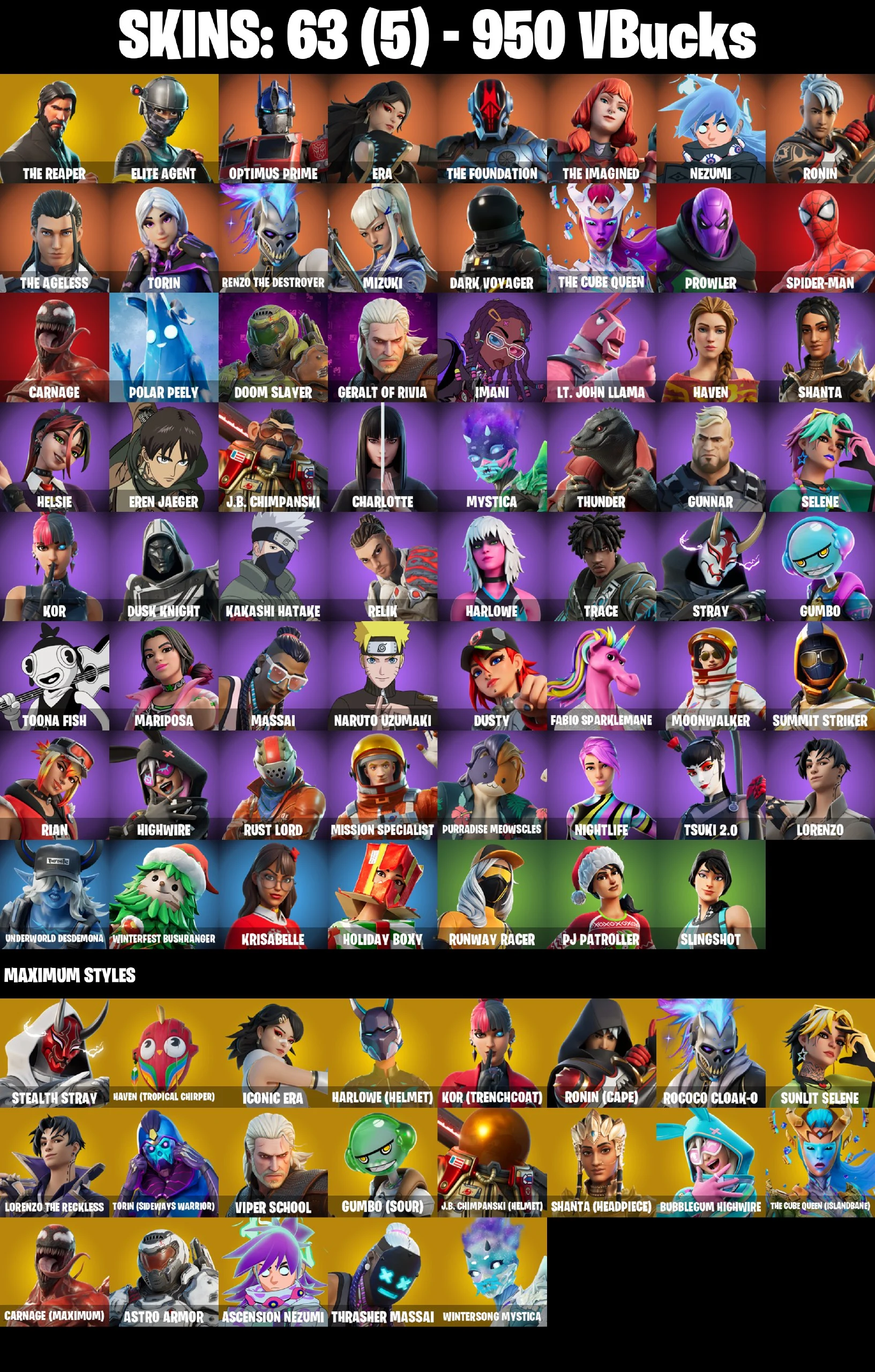 (PC/XBOX) 950 VB) 63 SKINS / THE REAPER / ELITE AGENT / OPTIMUS PRIME / ERA / THE FOUNDATION / THE IMAGINED / NEZUMI / RONIN / THE AGELESS / TORIN /