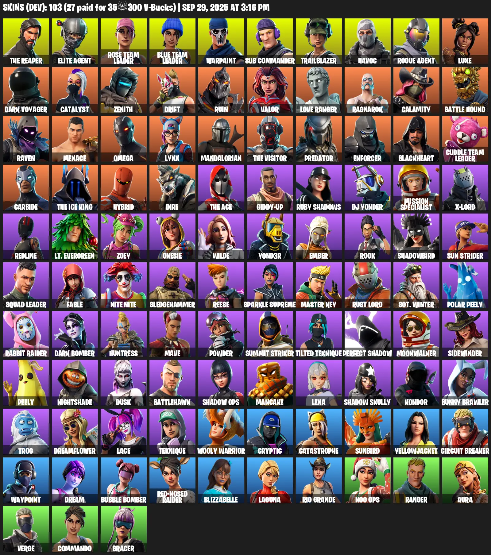 [PC/XBOX/PSN] 103 Skins | The Reaper | Elite Agent | Rose Team Leader | Blue Team Leader | Warpaint | Sub Commander | Trailblazer | Havoc | Rogue Agent | Luxe | Dark Voyager | Catalyst | Zenith | Drift | Ruin | Valor | Love Ranger | Ragnarok | Calamity