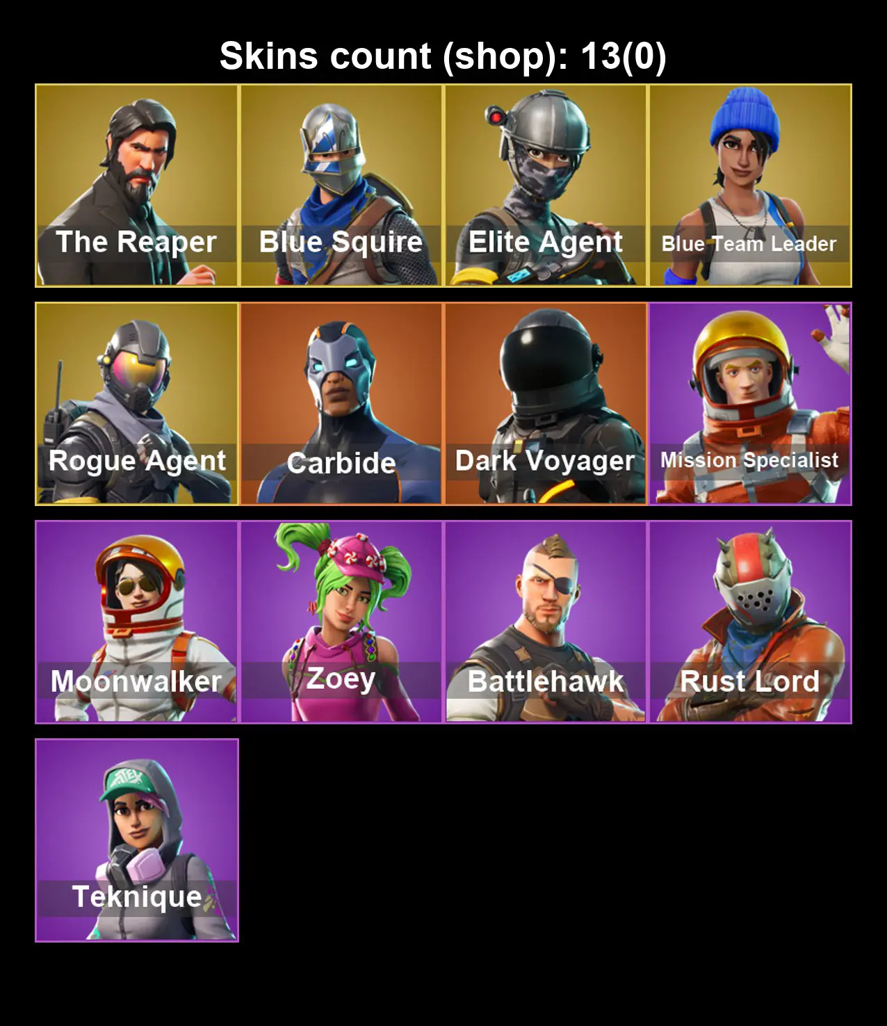 [PC/XBOX/PSN] 13 Skins 💜 The Reaper 💜 Blue Squire | Elite Agent | Blue Team Leader | Rogue Agent | Carbide | Dark Voyager | Mission Specialist | Moonwalker | 450 VB