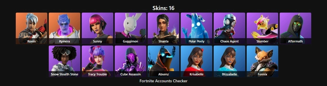 PC/XBOX/PSN 16 Skins⚡ | Ronin | Kymera | Sunny | Guggimon | Shanta | Polar Peely | Chaos Agent | Slumber | Aftermath | Snow Stealth Slone | Tracy Trouble