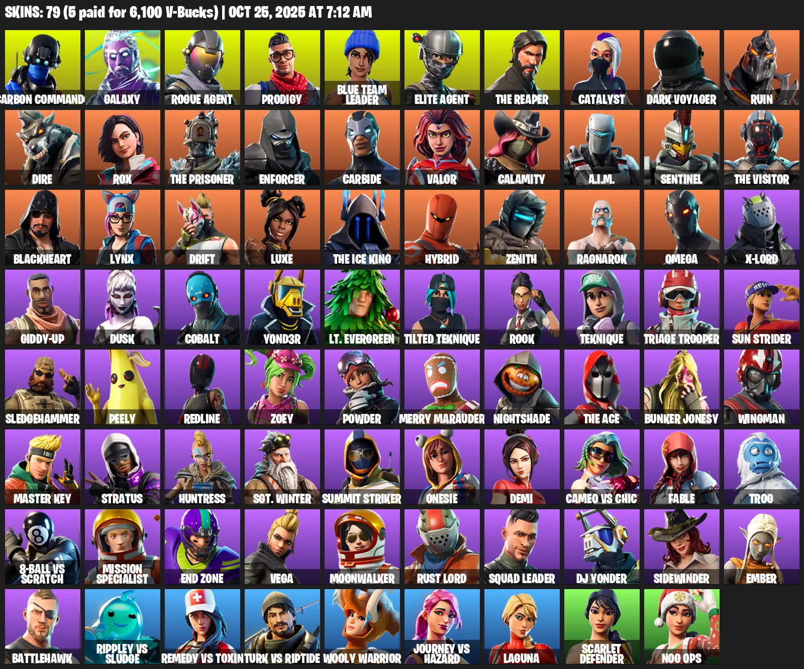 [PC/XBOX/PSN] 79 Skins | Carbon Commando | Galaxy | Rogue Agent | Prodigy | Blue Team Leader | Elite Agent | The Reaper | Catalyst | Dark Voyager | Ruin | Dire | Rox | The Prisoner | Enforcer | Carbide | Valor | Calamity | A.I.M. | Sentinel | The Visitor