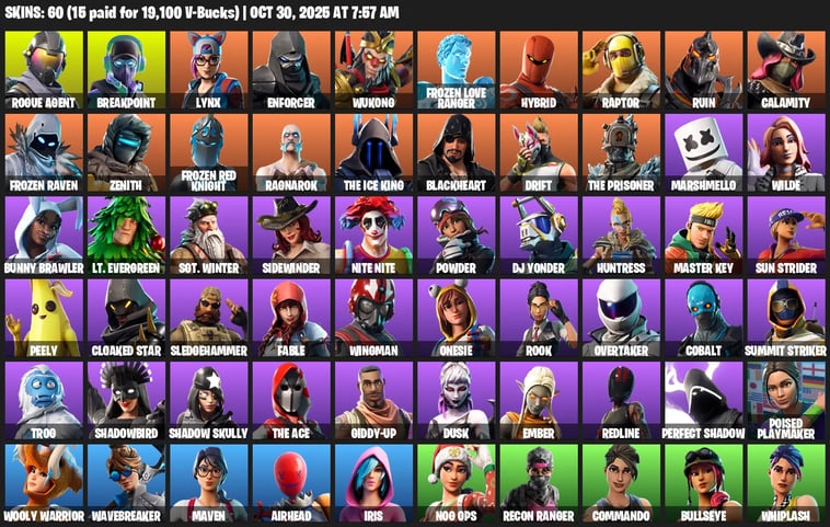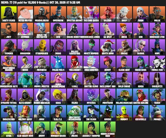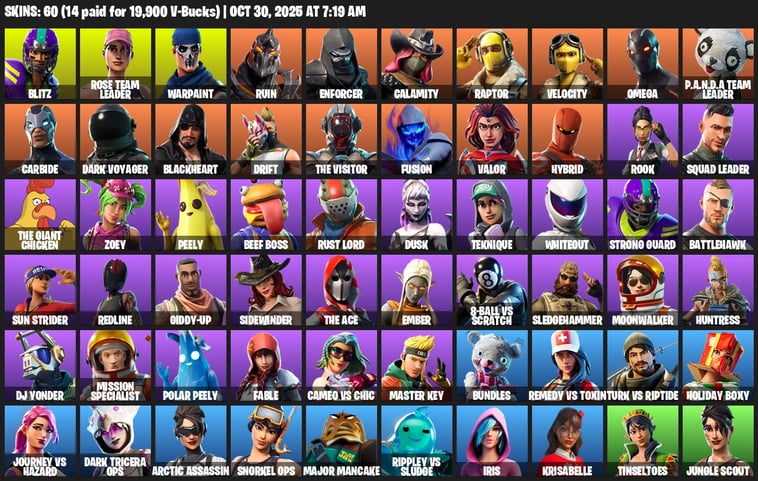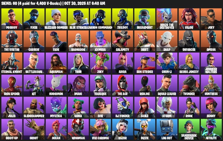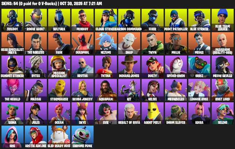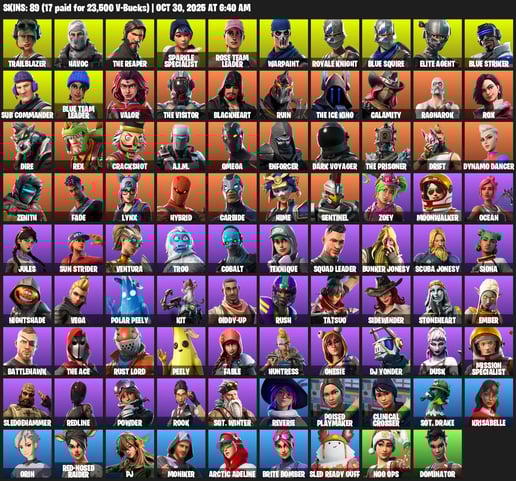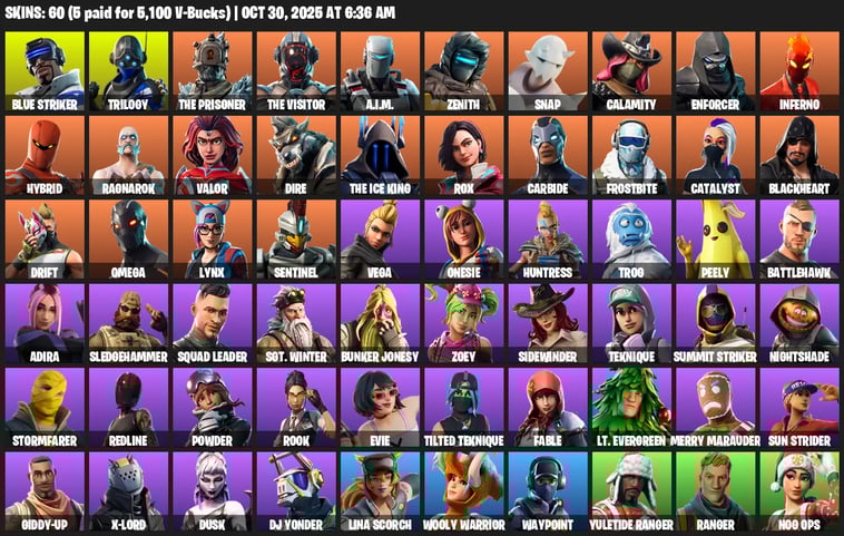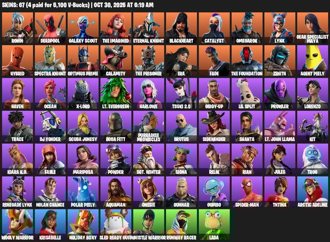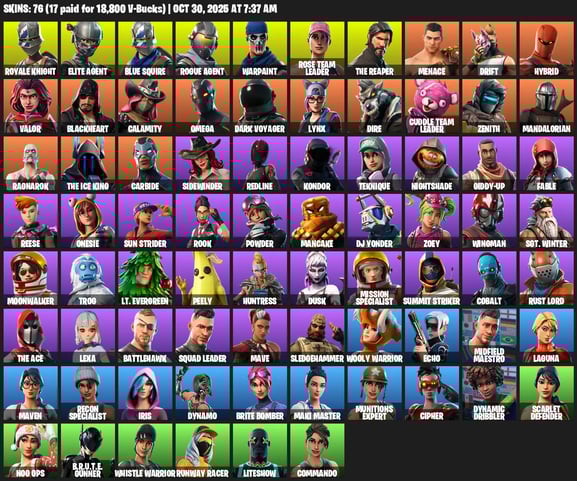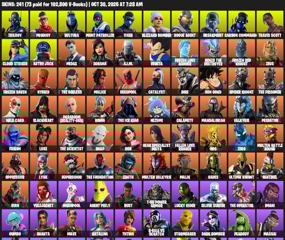 [PSN/XBOX/PC] 131 Skins | Warpaint | Astro Jack | Rose Team Leader | Travis Scott | Fade | Midas Rex | Ronin | Snap | Galaxia | Polarity | Eternal Knight | Gear Specialist Maya | Midas | Menace | Kymera | Deadpool | Hybrid | Raz | Joey | Calamity
