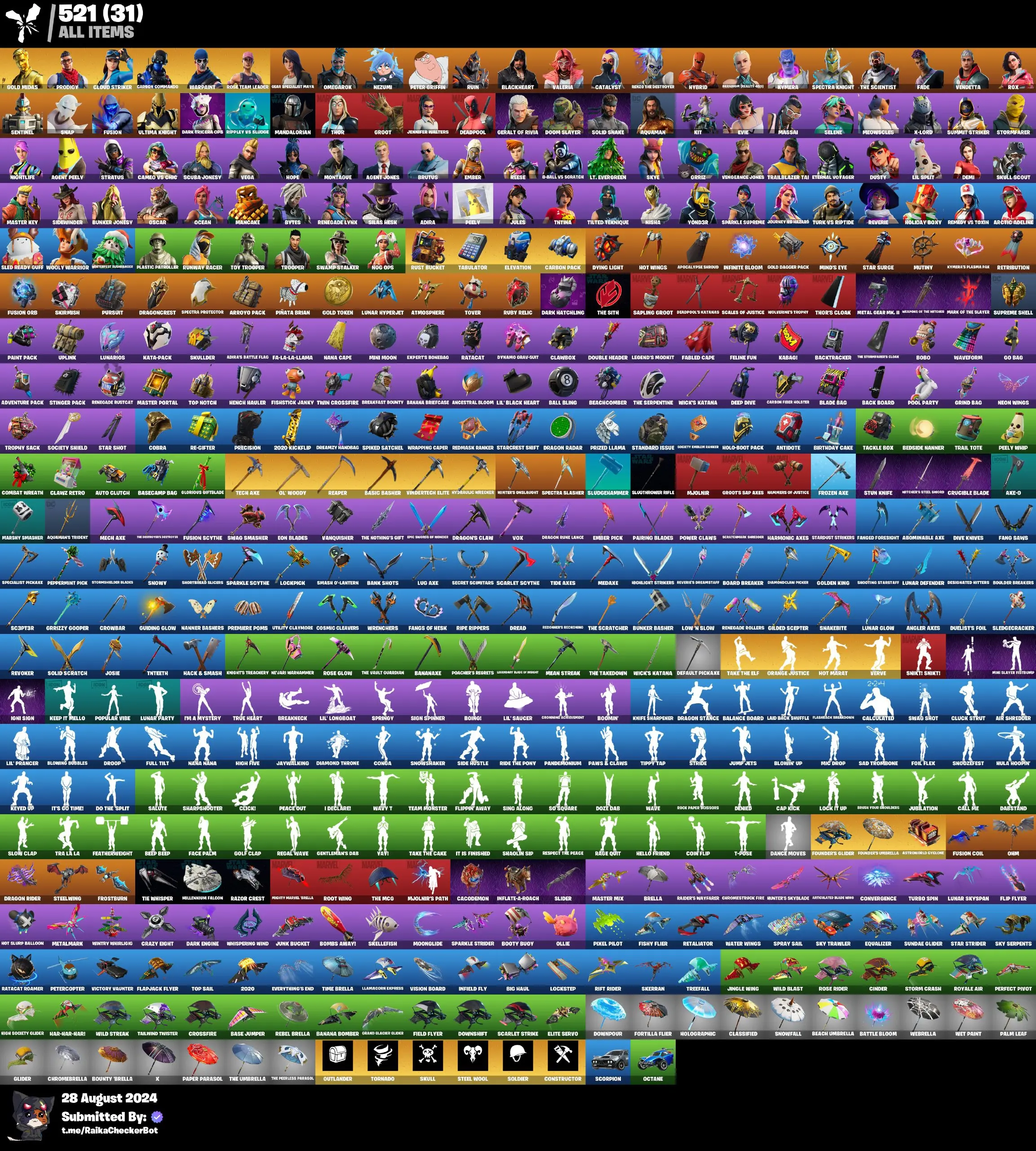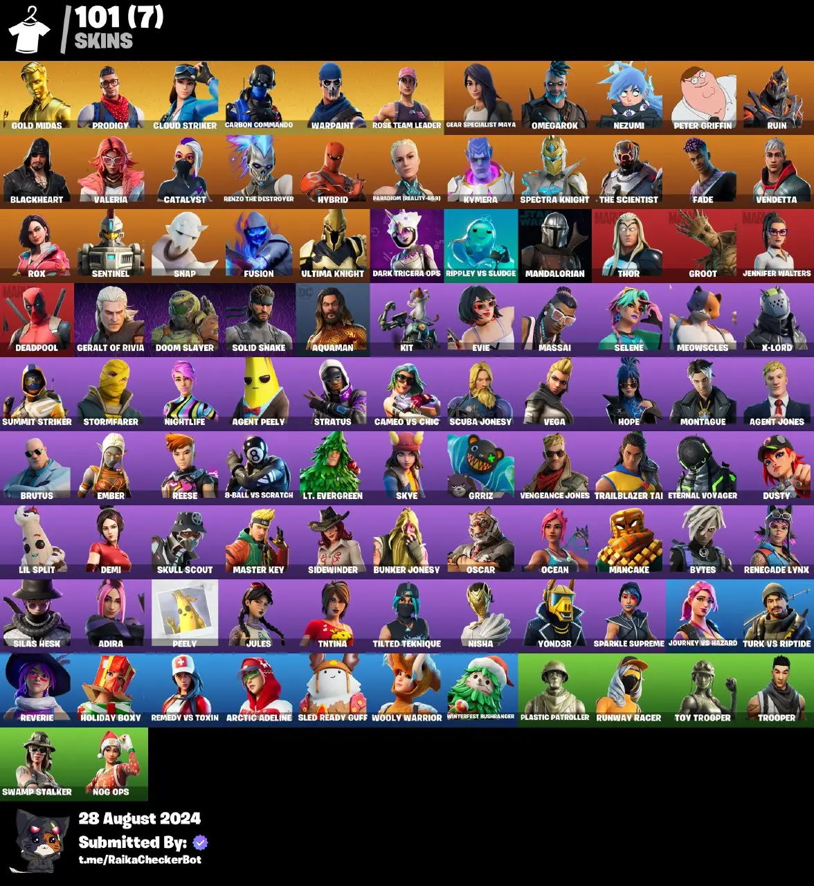 🔥🍀 SPRING OFFER 🍀🔥 101 Skisn 💎 Og Stw 💎 Gold Midas 💎 Cloud Striker 💎 Prodigy 💎 Reaper Axe 💎 Orange Justice 💎 Deadpool 💎 Spectra Knight 💎 Peely 💎 Toy Trooper 💎 Nog OPS 💎 Hope 💎 Demi 💎 Nightlife 💎 Rox 💎 Full Access 💎 PC\XBOX\SWITCH 💎