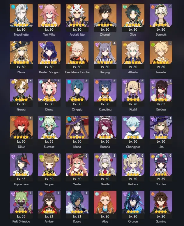 AR56 / Asia {15X 5 STAR LEGENDS} Neuvillette + WP / Xiao + WP / Zhongli / Itto / Navia / Miko / {2-WEAPON} mssh1064