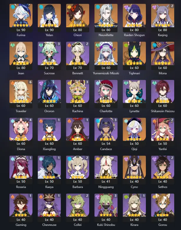 AR56 / NA {13X 5 STAR LEGENDS} Yelan + WP / Furina / Raiden / Neuvillette / Chiori / Mizuki / {2-WEAPON}- FULL ACCESS mssh1050