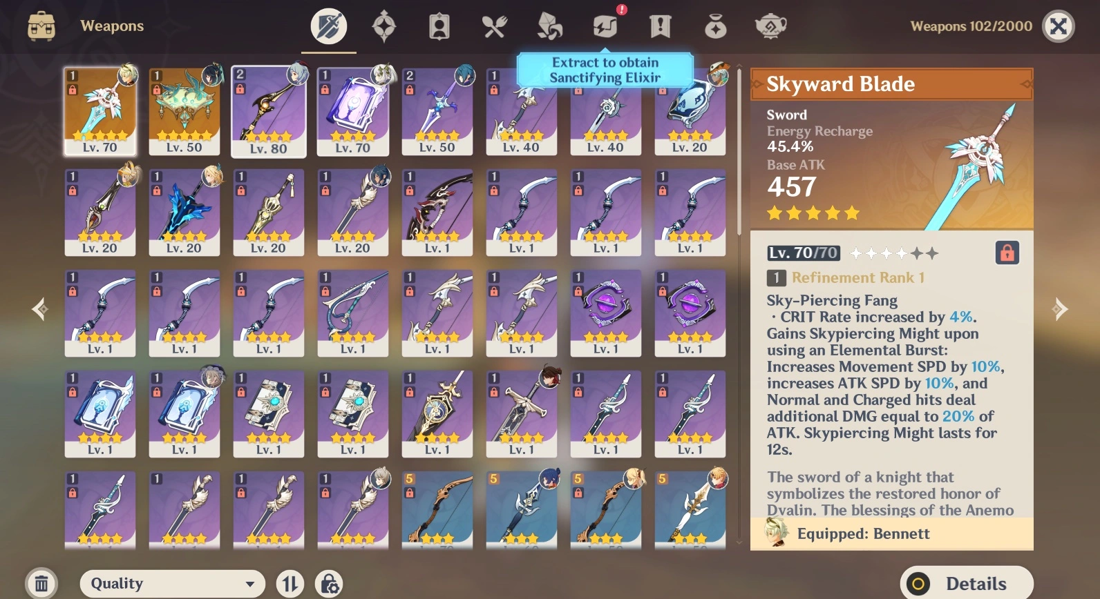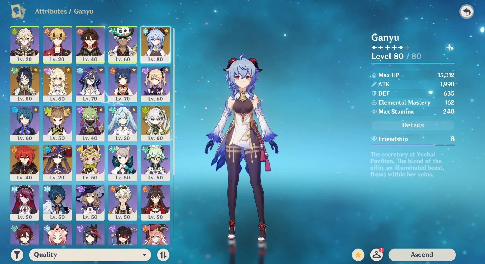 EU AR52 | 5 stars*7 Diluc(C1) | Ganyu | Mona(C1) | Nahida | Xianyun | Crane's Echoing Call | Skyward Blade | lots of 4* characters and weapons