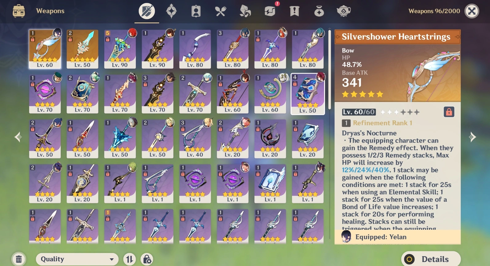 EU AR53 | 5 stars*7 Dehya(C1) | Diluc(C1) | Mona | Nahida | Nilou | Yelan | Silvershower Heartstrings | lots of 4* characters and weapons