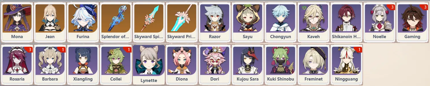 [EU]AR47|Five Stars*[Furina+Signature Weapons+Mona+Jean]Five Star Weapons*3||Four stars*18|For detailsplease see the description and picture