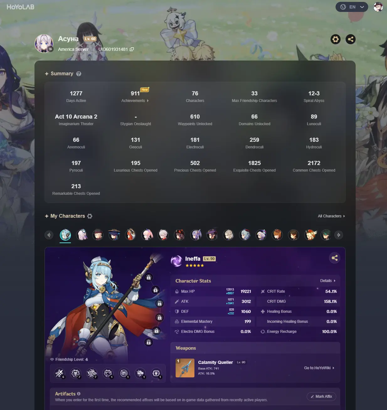 #GE706 [NA] AR 60 | 66 LEGS | Flins+Ineffa+Citlali+Raiden+Xianyun+Wanderer C1+Childe C1+Kazuha+Xiao+Ayato+Zhongli+Ganyu+MORE!!! | FULL ACCESS + EMAIL