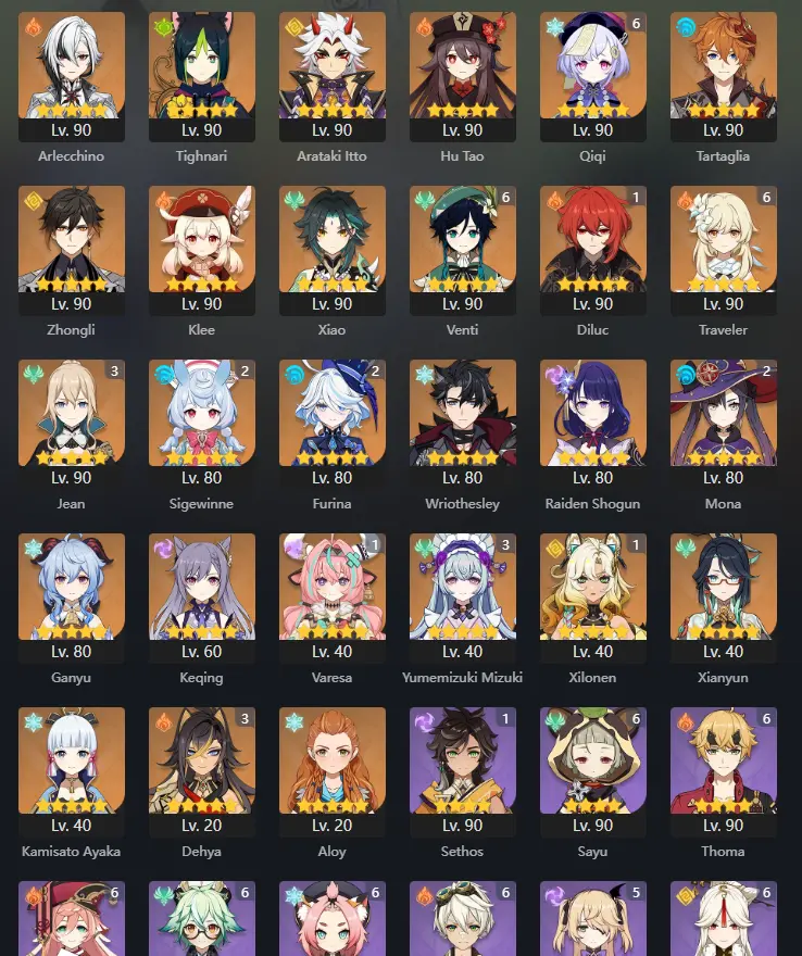 GI2882 [EU] AR58 | Venti C6 R5 + Arlecchino C1 + Sigewinne C2 R2 + Furina C2 R2 and more! | FULL ACCESS + EMAIL
