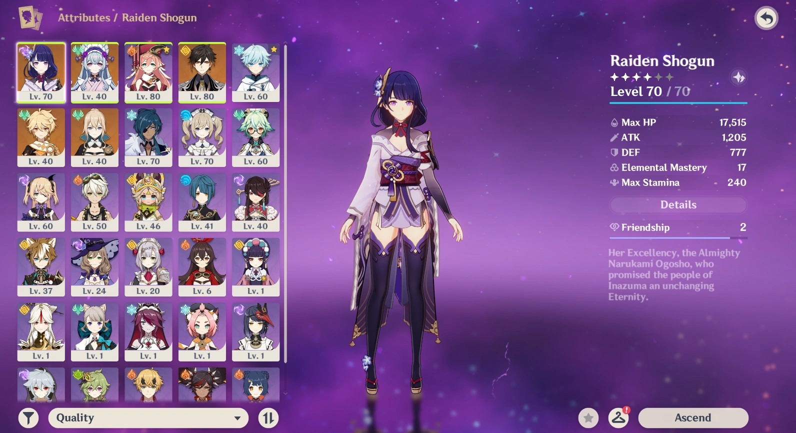 NA AR45 | 5 stars*4 Jean | Raiden Shogun(C1) | Yumemizuki Mizuki | Zhongli | lots of 4* characters and weapons