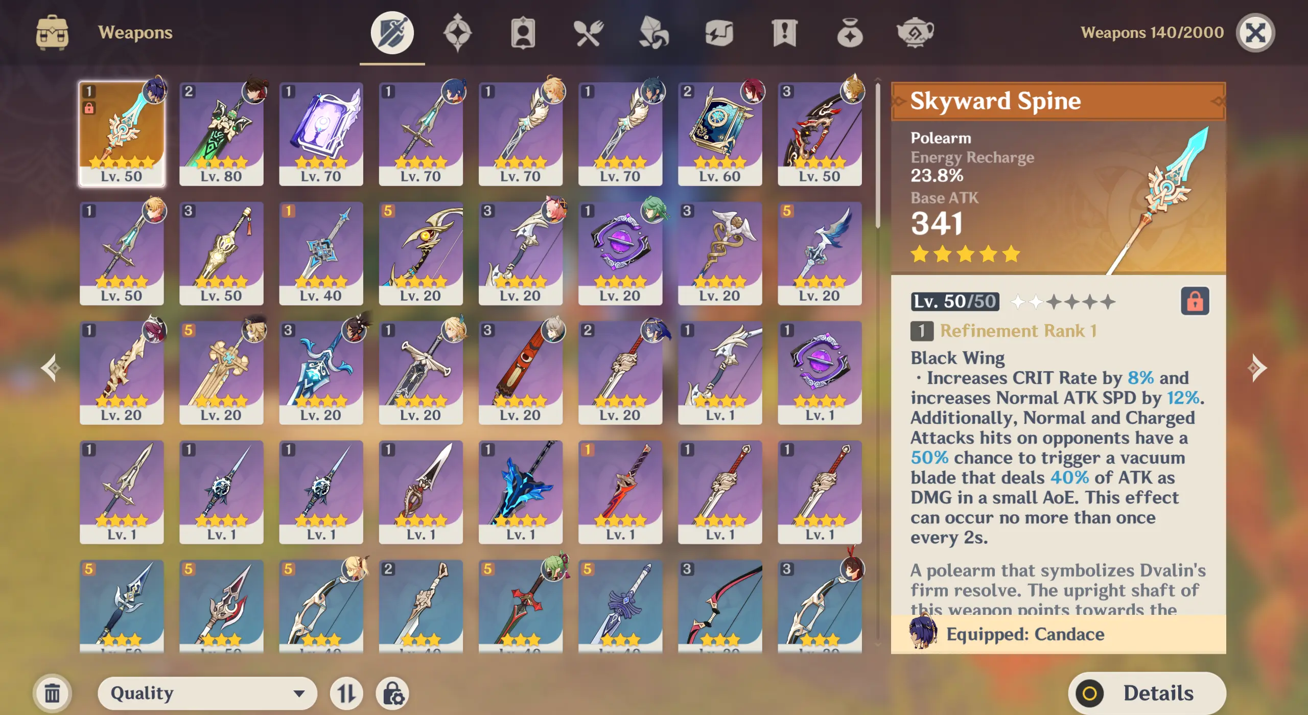 NA AR50 | 5 stars*8 NAVIA | TARTAGLIA | BAIZHU | YAE MIKO | MONA(C1) | DILUC | QIQI | SKYWARD SPINE + lots of 4* characters and weapons