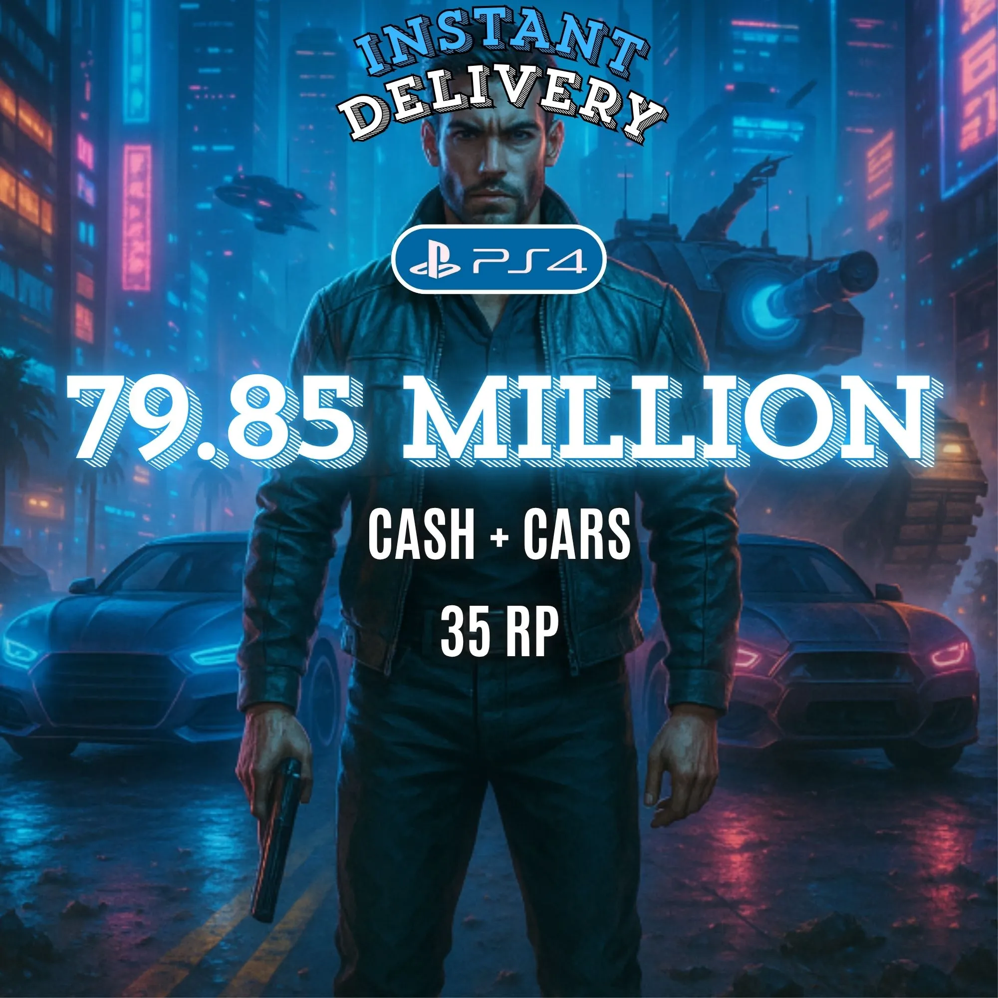 [PS4] GTA 5 Modded Account 🧨 $79.85 Million Cash + Cars | RP Rank 35 | Instant Delivery | PZ48
