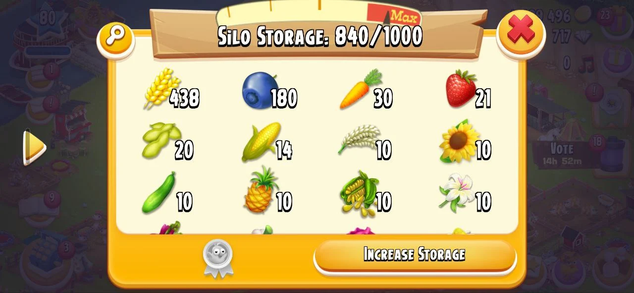 ✨️ CHEAPEST LEVEL 80 HAY DAY FARM 🌾 4639496 COINS 🪙 4003/4000 BARN STORAGE💪 840/1000 SILO STORAGE🎯 717 GEMS💎 SUPPORTS BOTH iOS&Android✅️ INSTANT DELIVERY 🚚