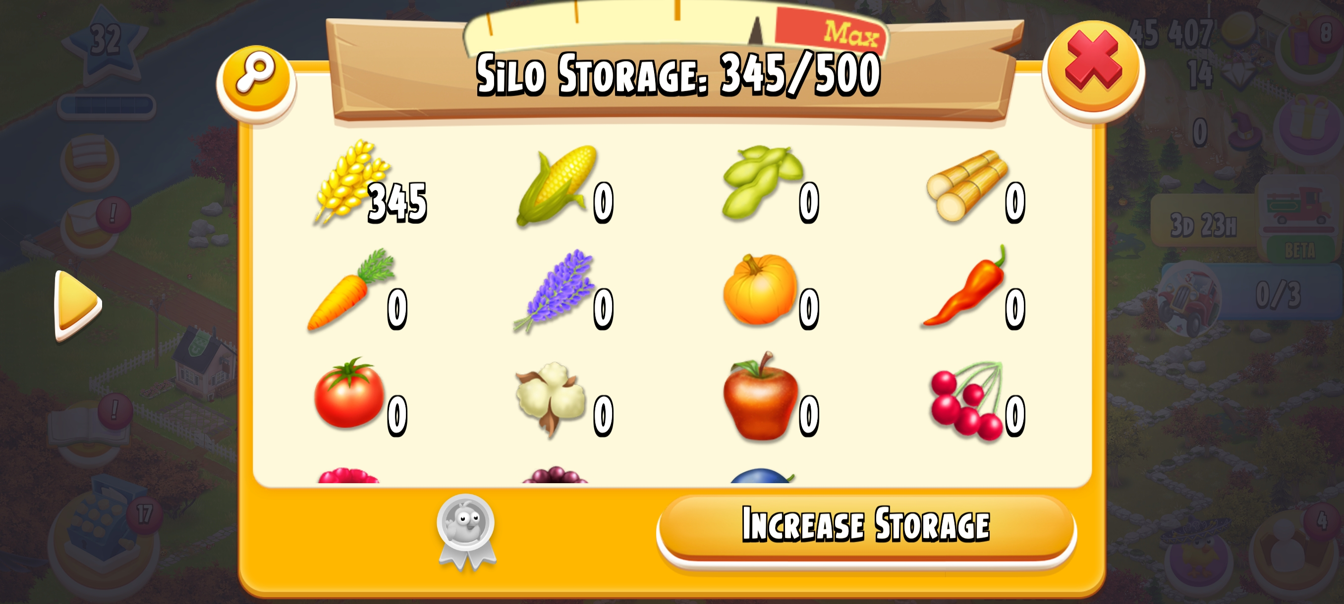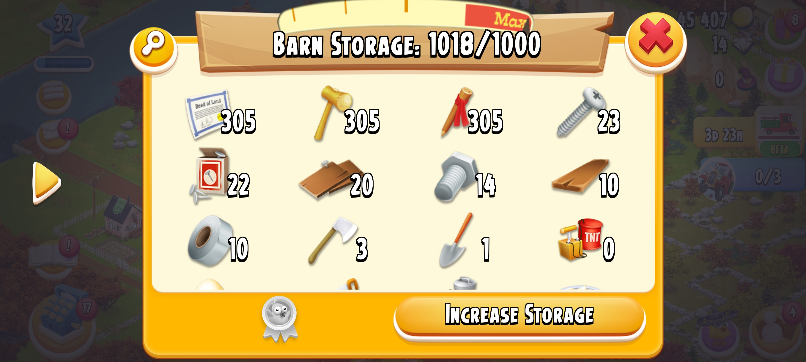🏆 LEVEL 30🥇🏚️ 1000 Barn Storage🛠️ 🌟Fully Filled With Tools🌟🌍 Main Land Open🌾 500 Silo Storage💰 45K+ Coins & 💎 14 Diamonds⚡ Instant Delivery