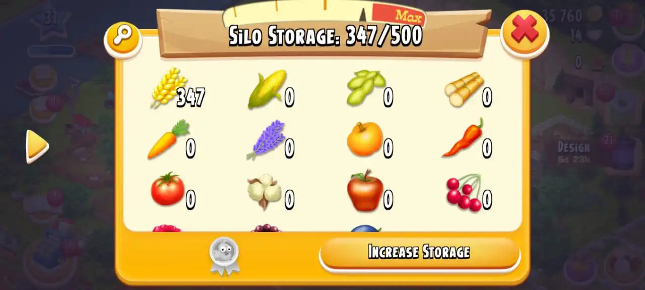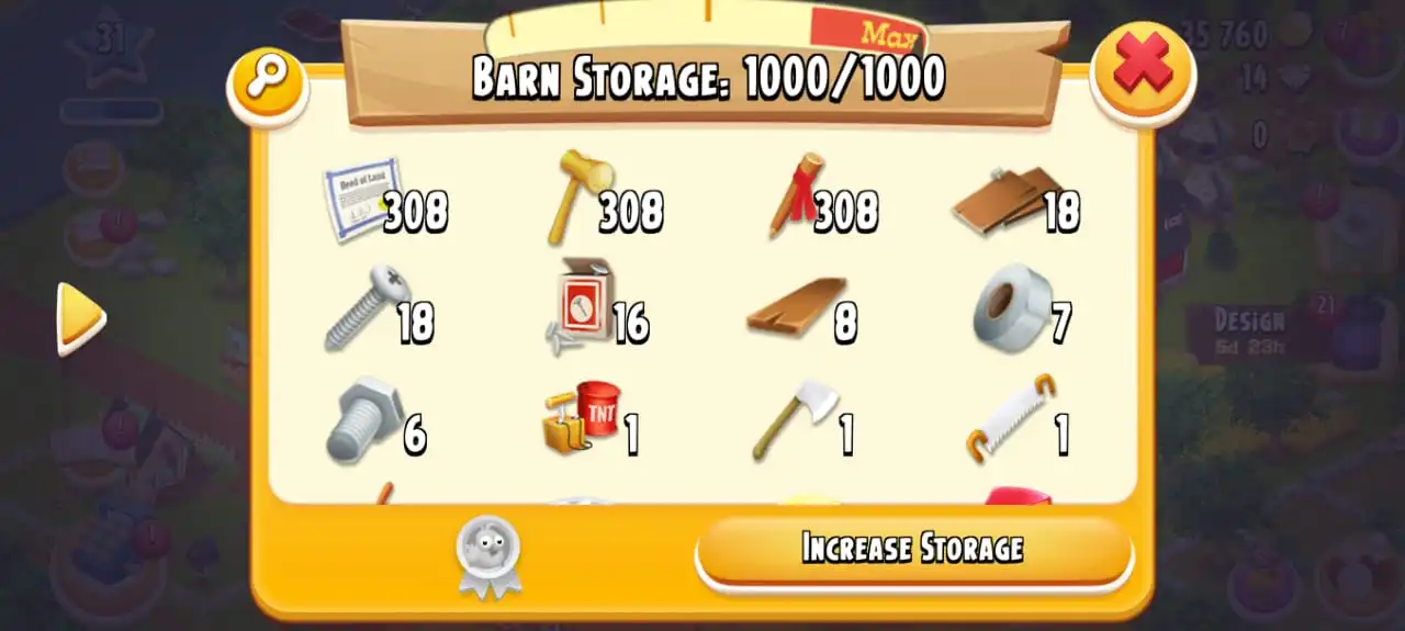 LEVEL 31 | 1000 Barn Storage | Fully Filled with Land Tools | 500 Silo Storage | 35K+ Coins & 14 Diamonds | Instant Delivery