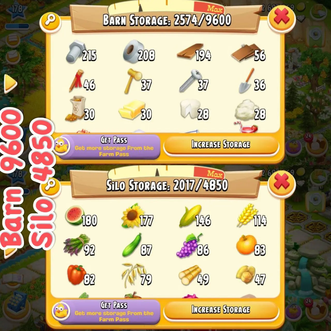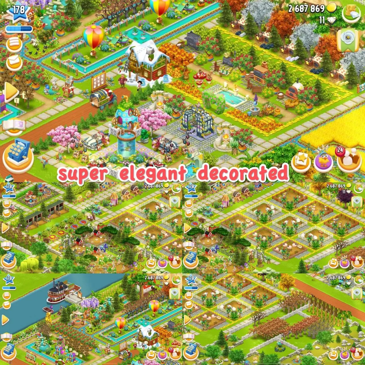 Vip Farm⛲️⚡️LvL 178 Hayday⛲️⚡️Top Notch Decorations with Super elegant Base design⚡️⛲️Big Barn 9600 with 4850 silo storage⚡️⛲️Most Beautiful farm⛲️Full 180% land open ⚡️⛲️Townhall 12 with 35 reputation decorated too⚡️⛲️