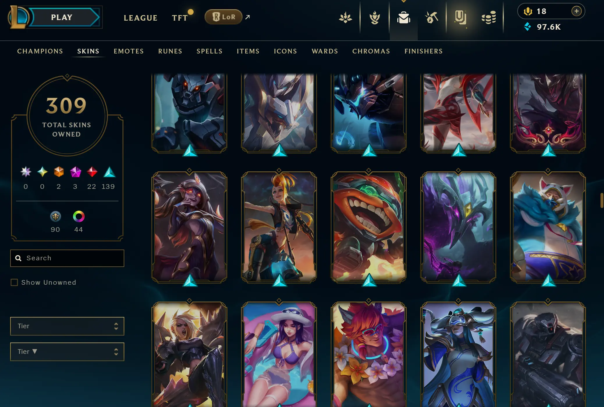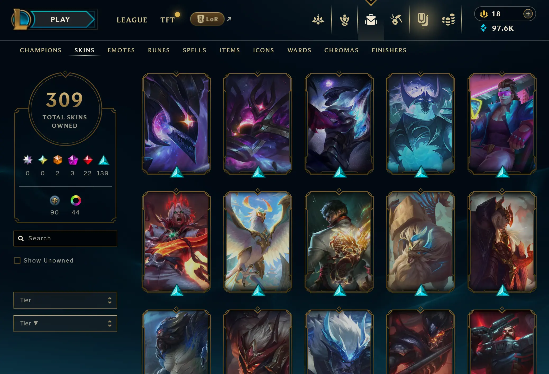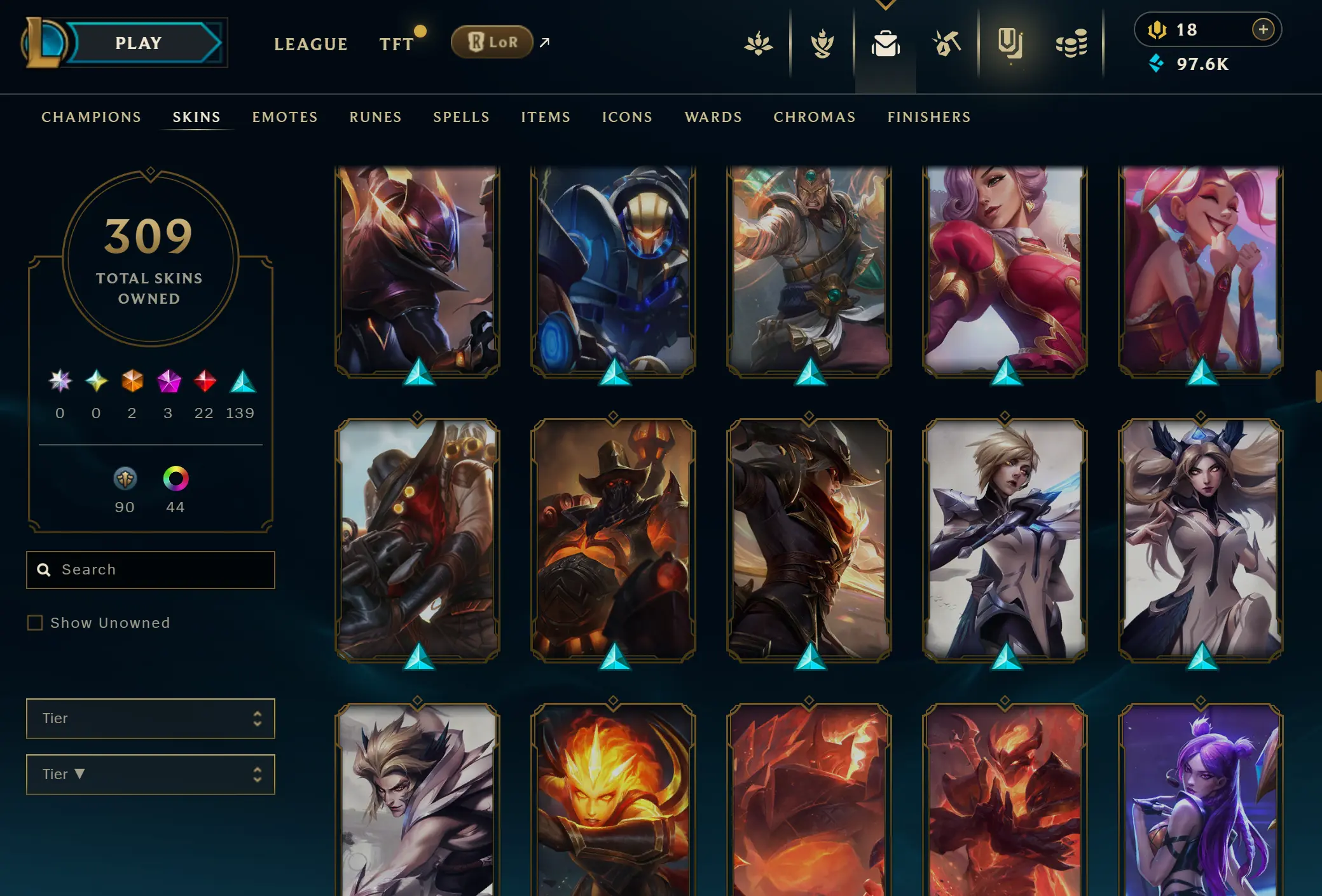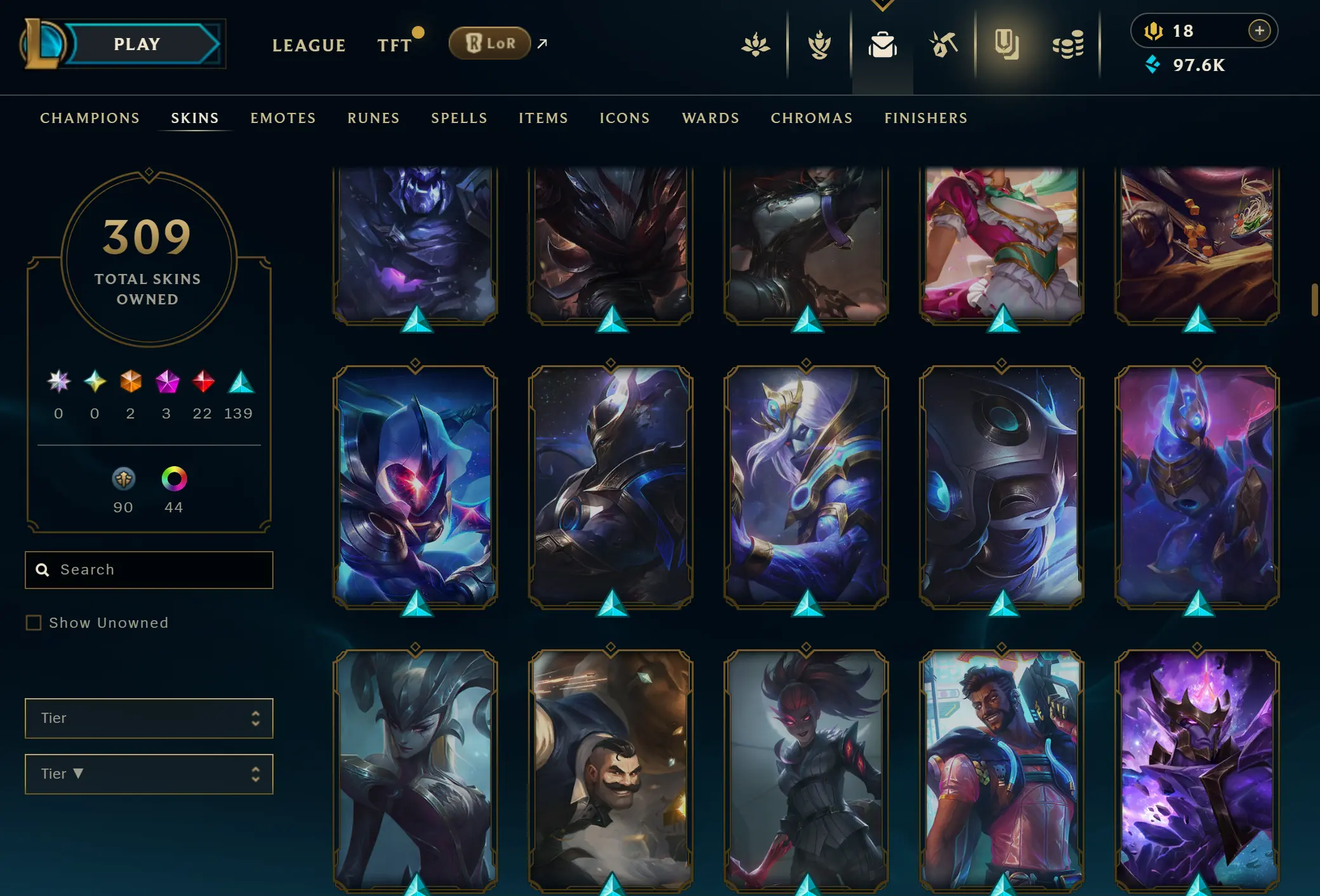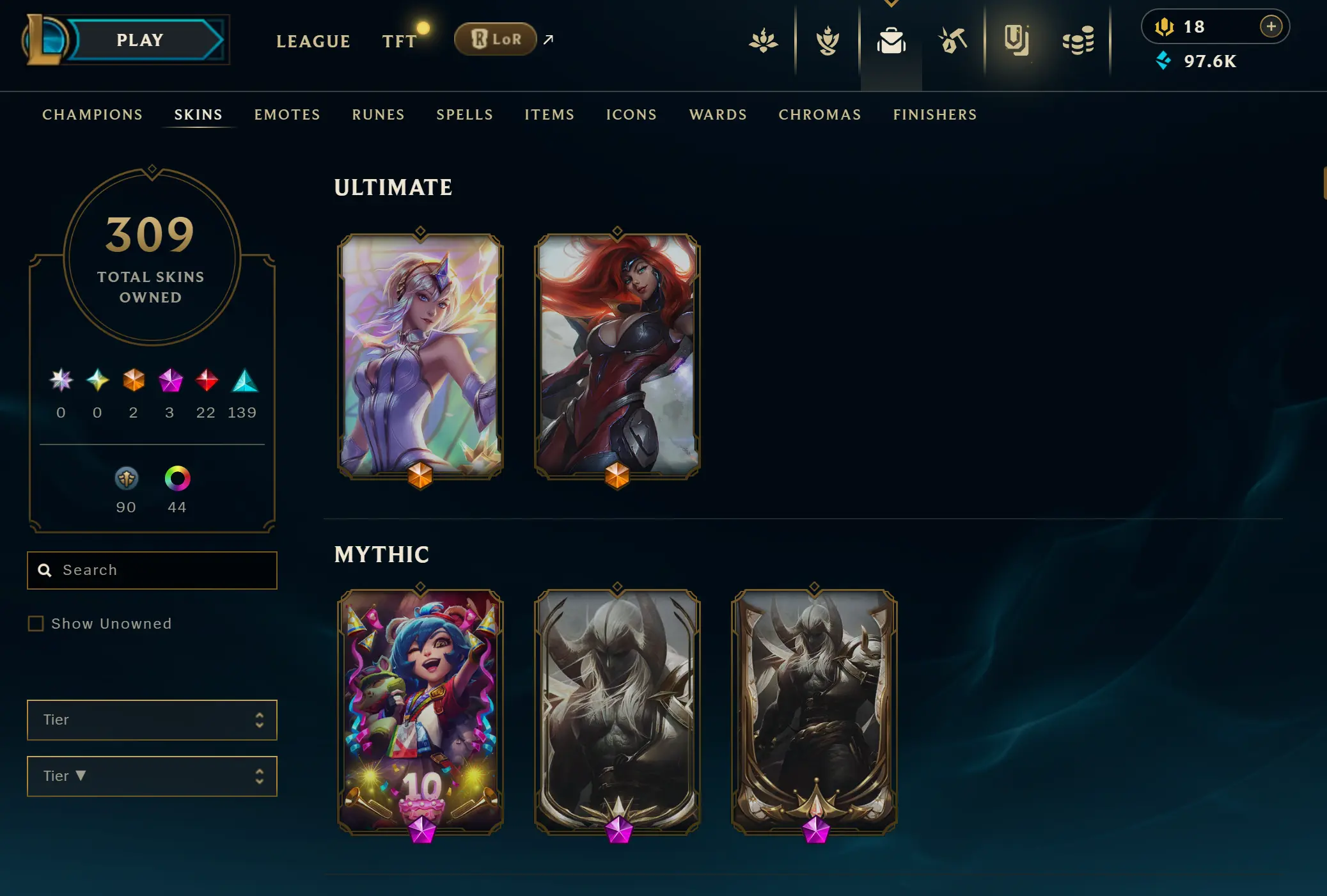 EUNE | 306 skins | 169 champions | Elementalist Lux | Gun Goddess Miss Fortune | Prestige Blood Moon Aatrox | Battle Academia Ezreal | Corporate Mundo