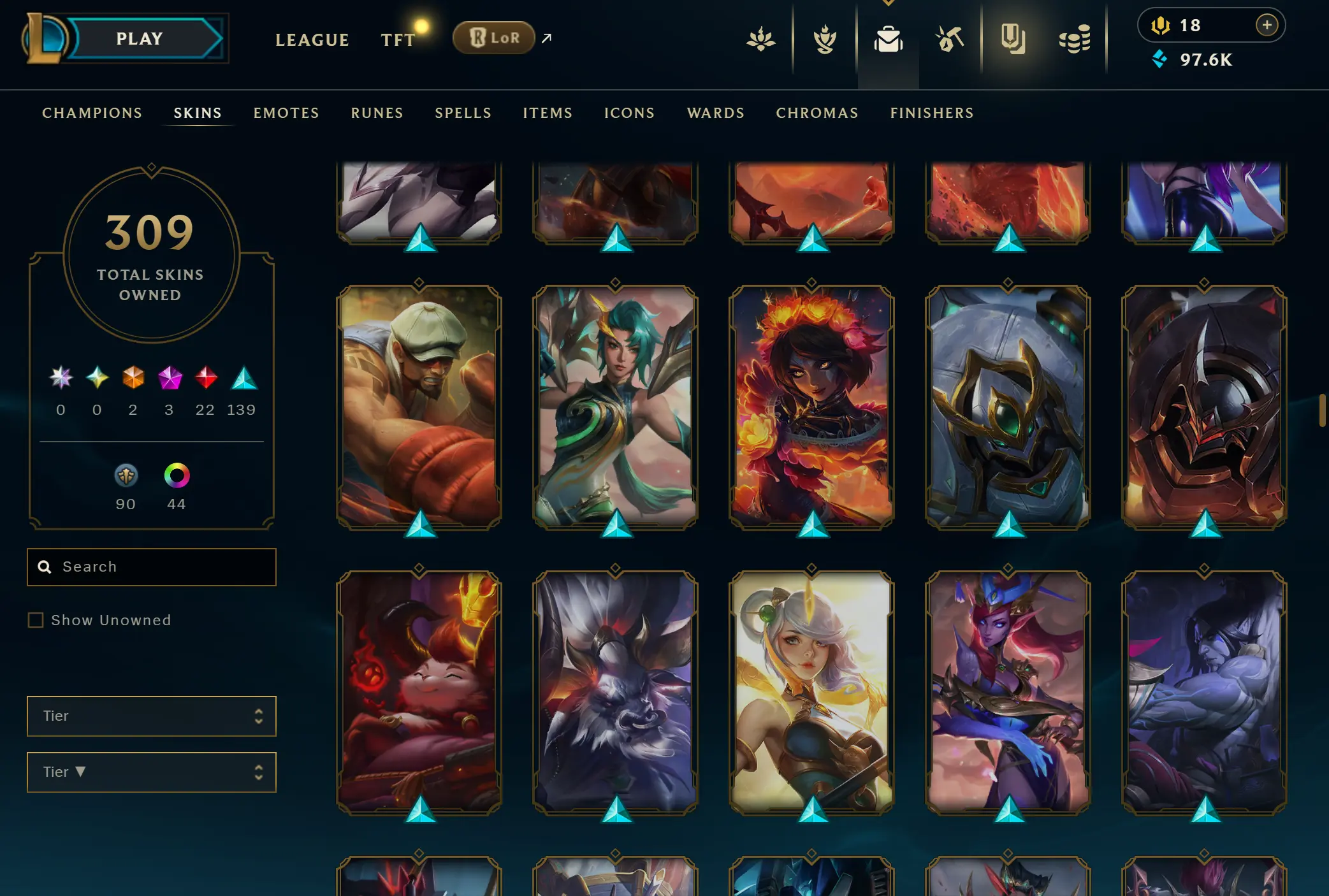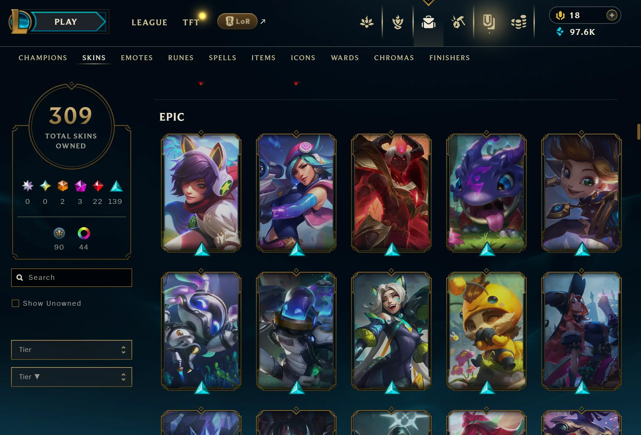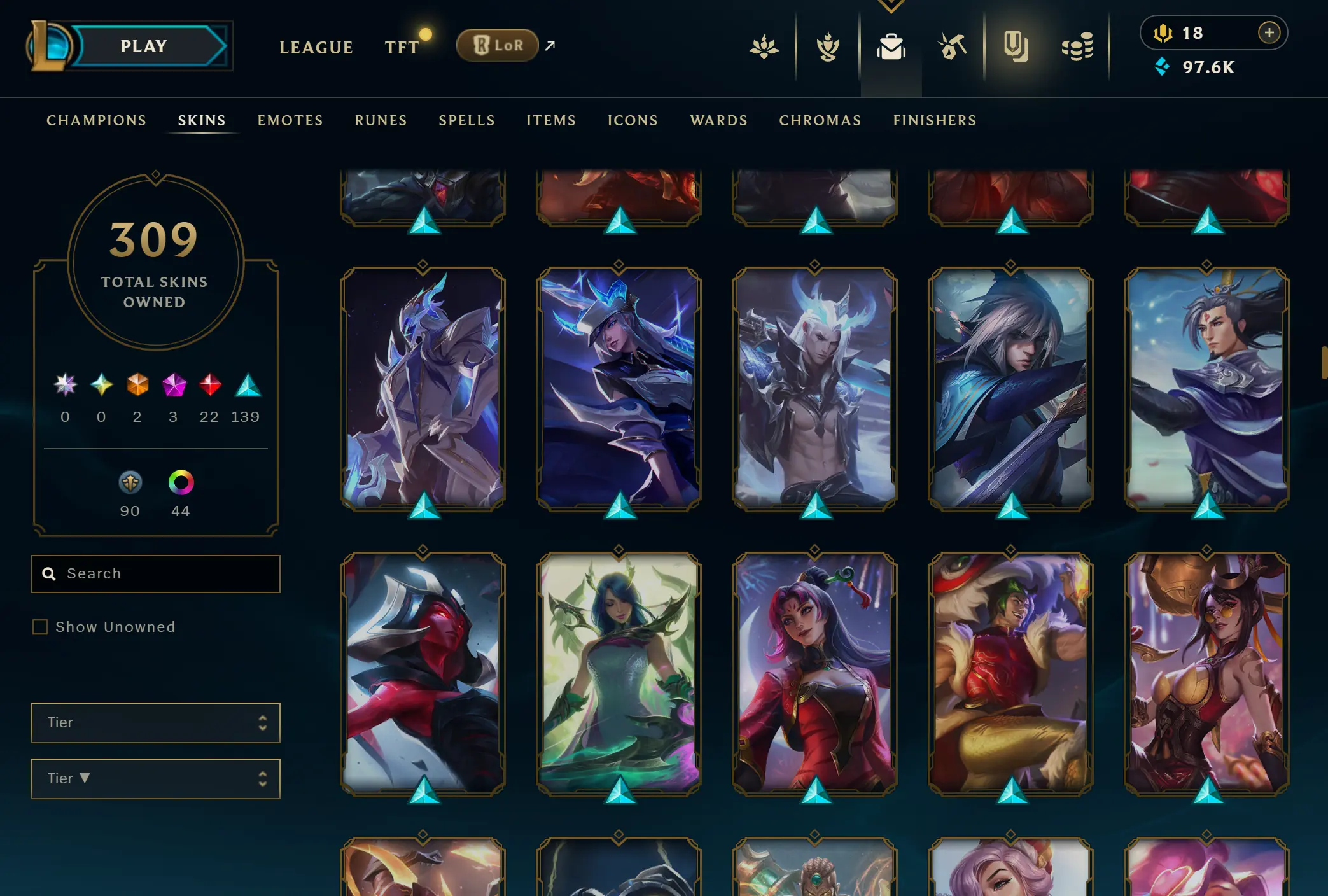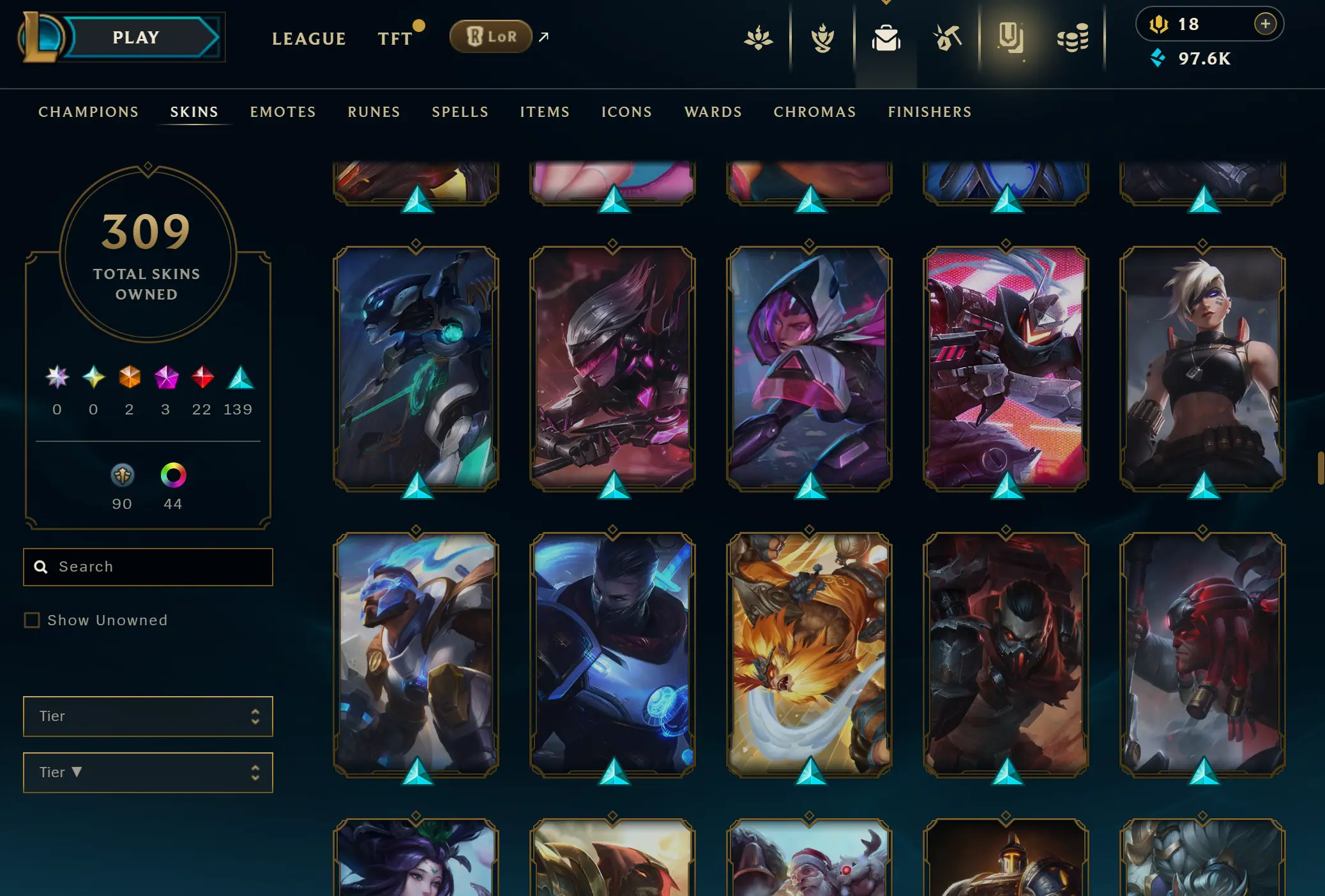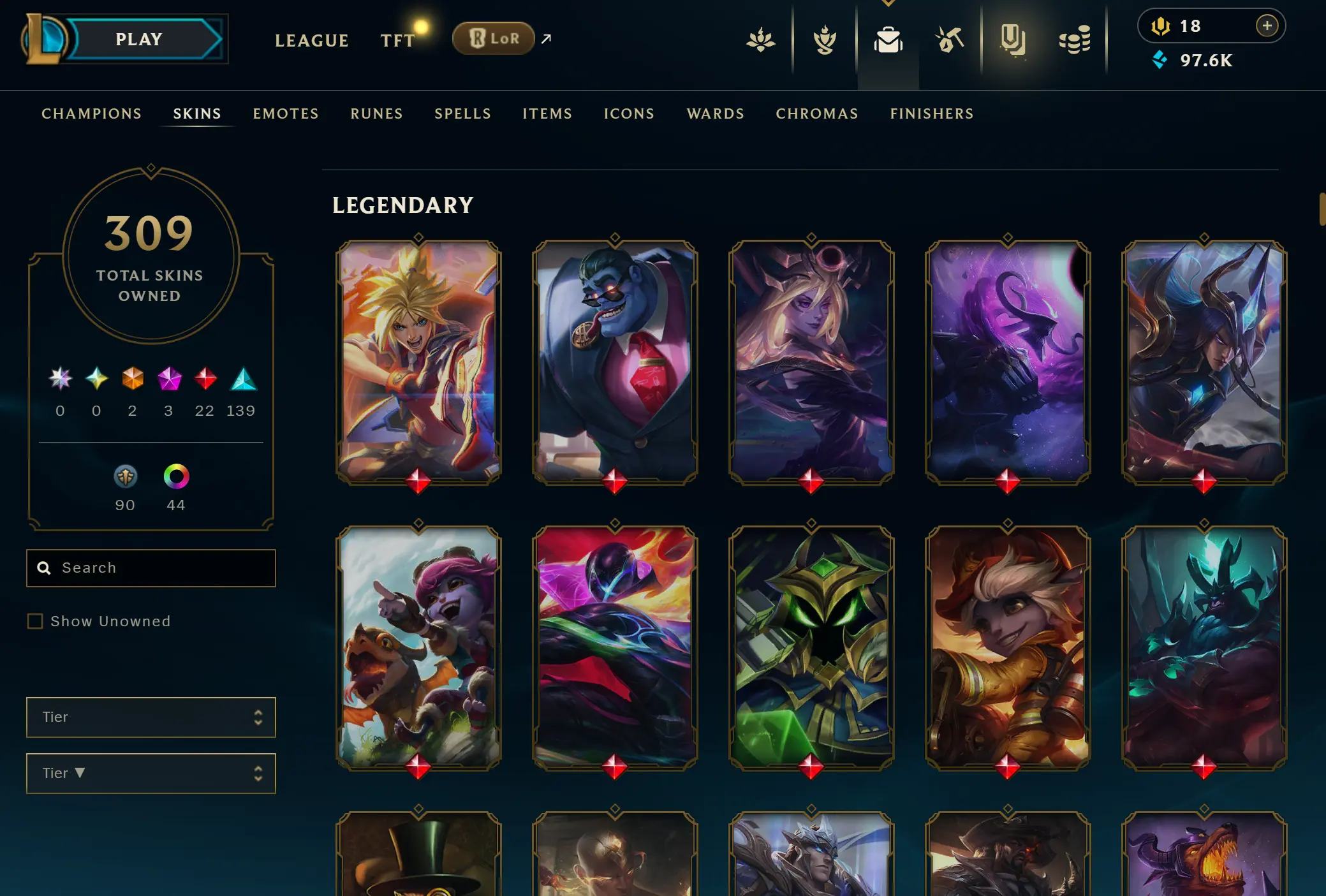 EUNE | 306 skins | 169 champions | Elementalist Lux | Gun Goddess Miss Fortune | Prestige Blood Moon Aatrox | Battle Academia Ezreal | Corporate Mundo