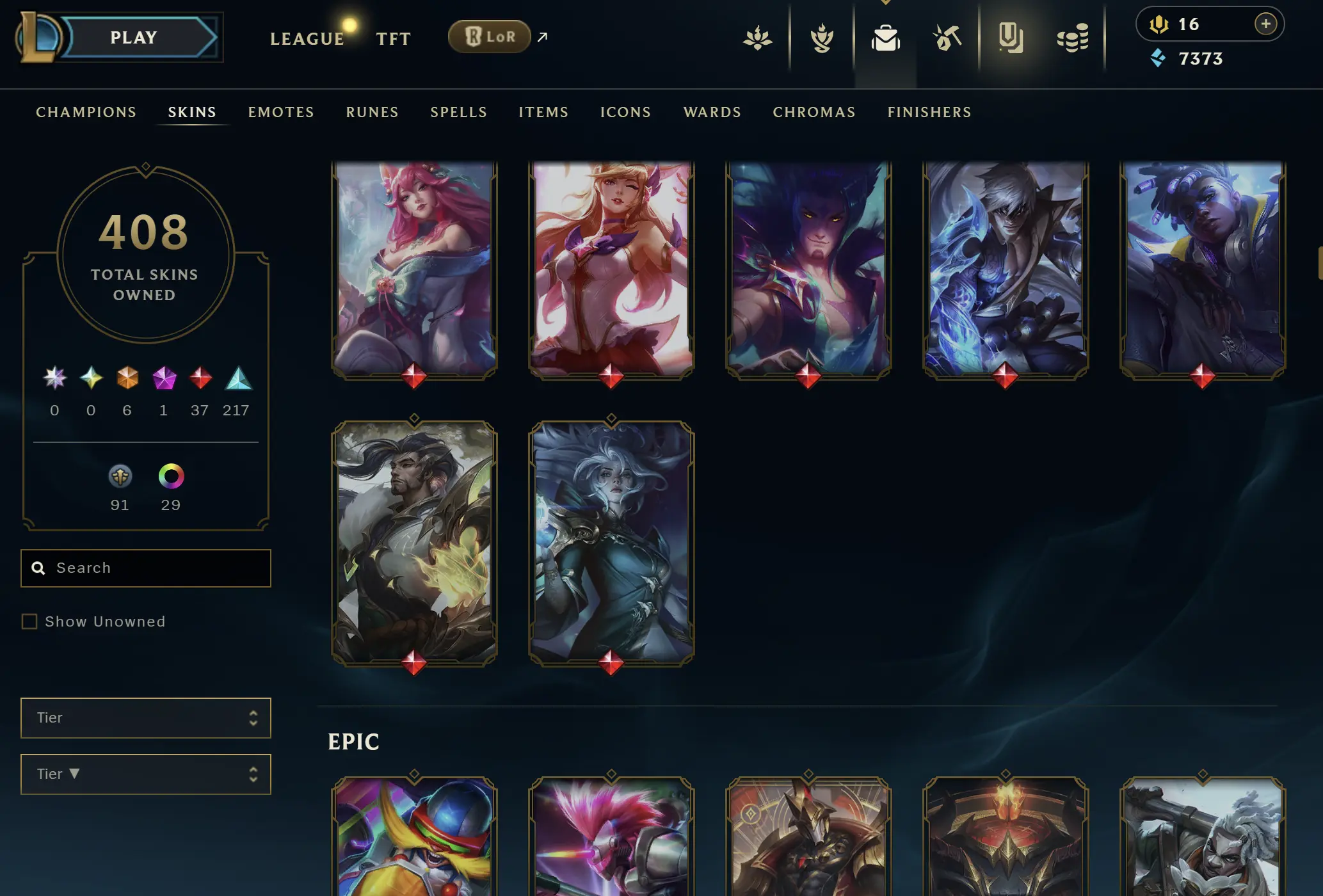 EUNE | 404 skins 147 champions | DJ Sona | Elementalist Lux | Gun Goddess Miss Fortune | Pulsefire Ezreal | Prestige Battle Queen Diana