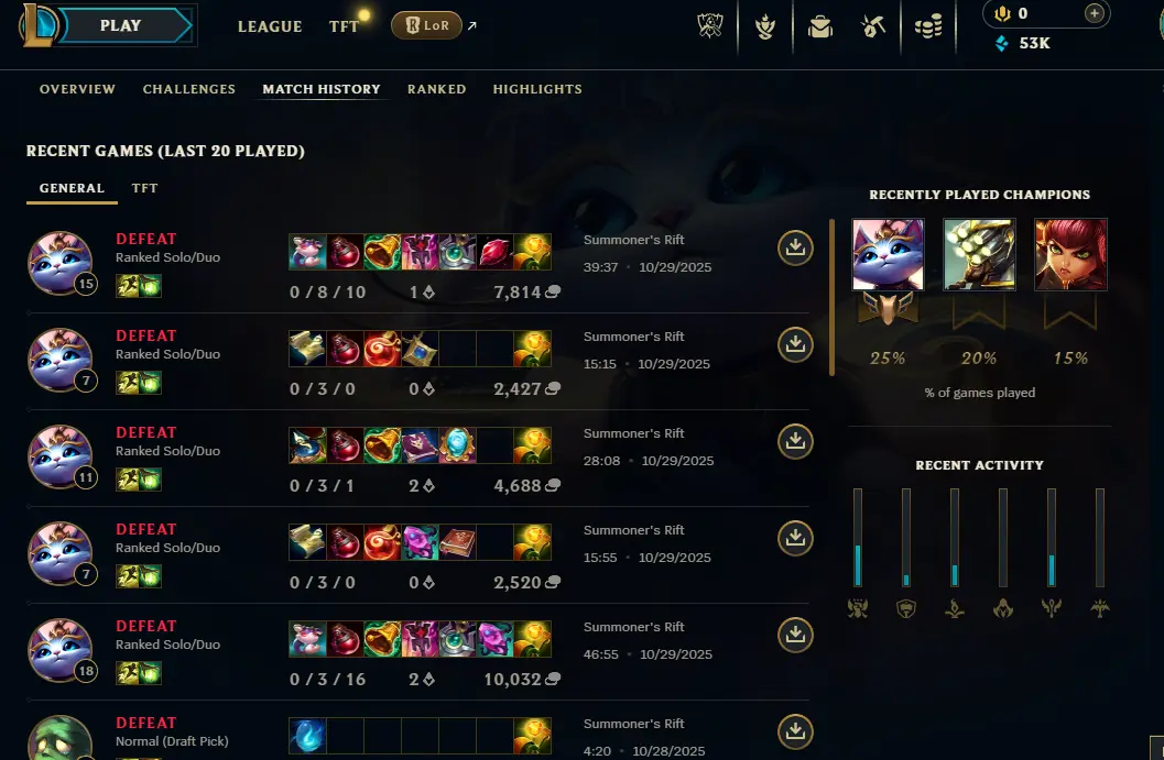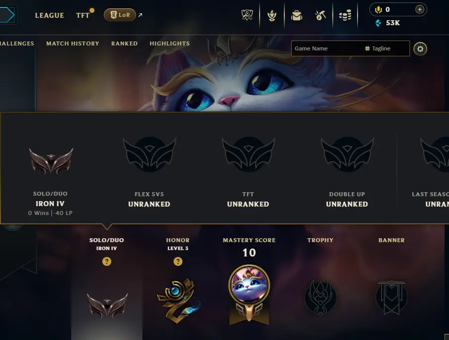 🔥[EUW][SE15]⭐ IRON IV [0LP-40] | 0W-5L 35- 20 Champs 🔥 | Hand-Deranked | Unverified Email ✨ | Iron 4 MMR