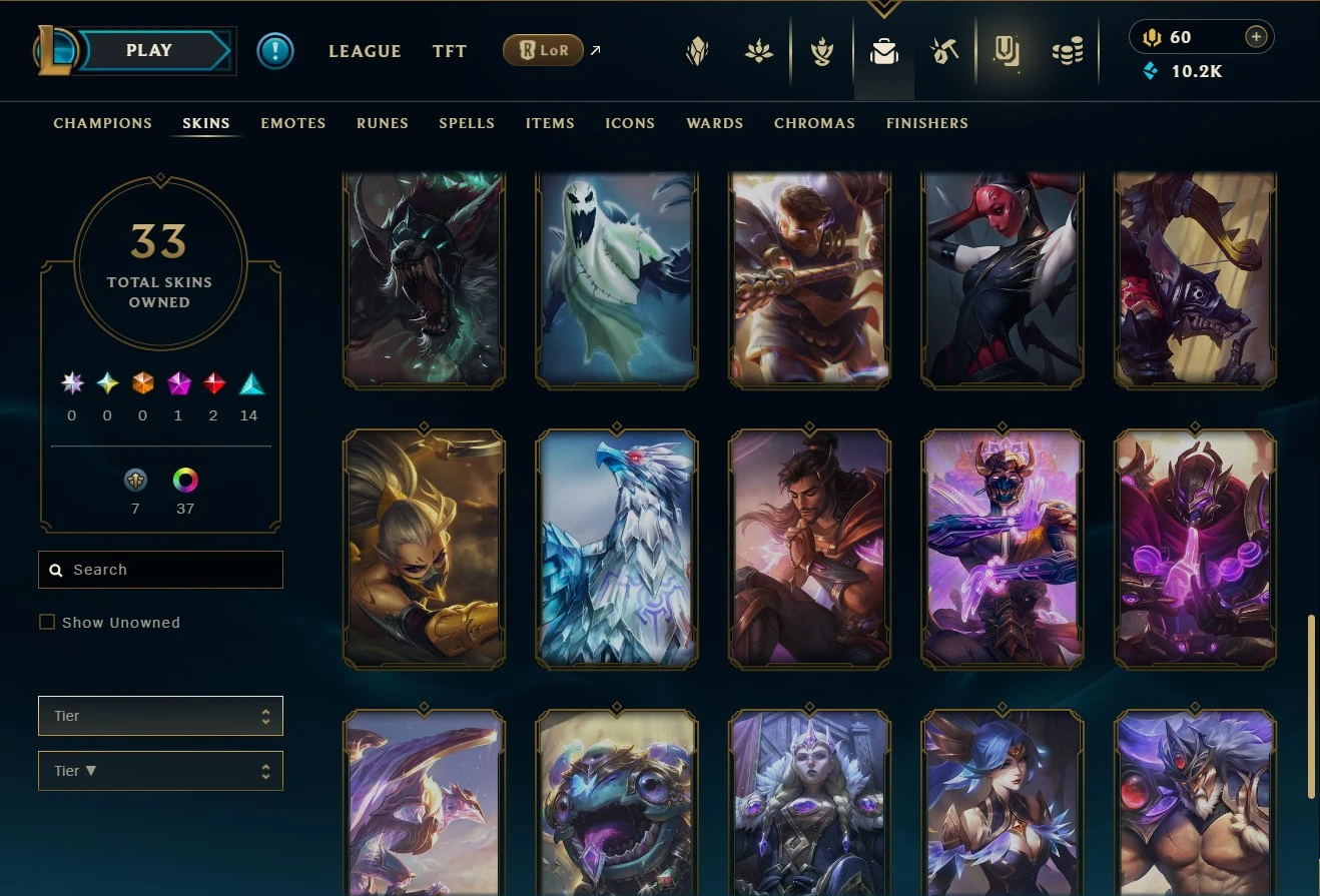 👑FULL INFO👑(EUW) EMERALD IV 🚀33 SKİNS+80 CHAMPS⚡10.2K BE