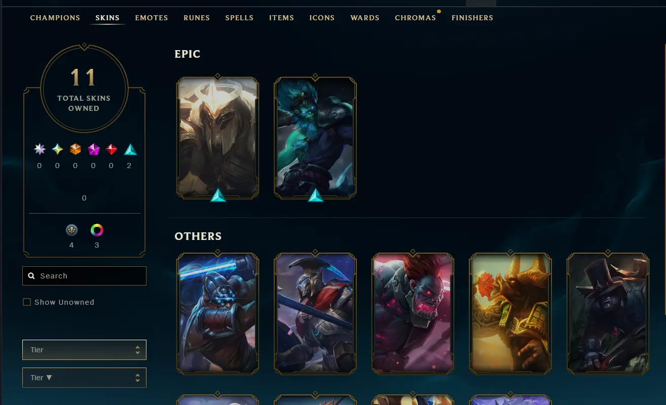 [ NA ] -51 LEVEL ⸱ UNRANKED ⸱ 11 SKINS [ 1617 BE ,320 RP ] ⸱ HONOR LVL 2 ⸱ 37 CHAMP