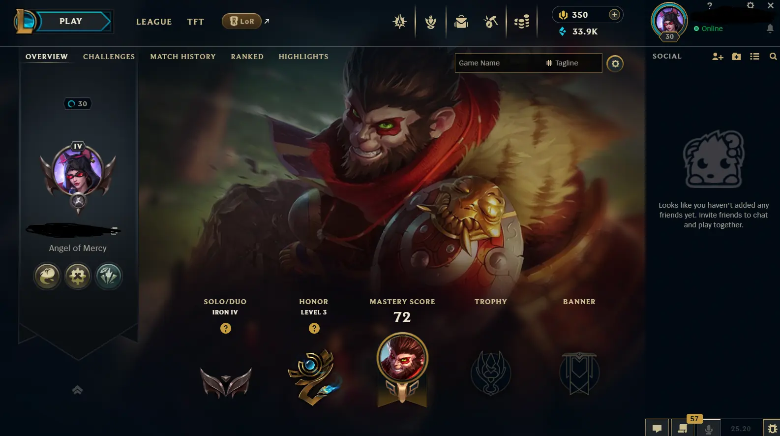 ✨NA Lvl30 HandLeveled ✨IRON 4 ✨ 1 W-6L✨Fresh 350+ RP Prime✨Instant Delivery🚀Unverified✨Recovery Info✨