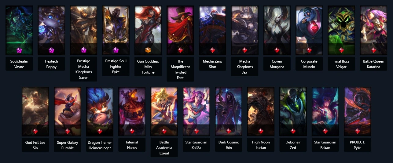 UnRanked┃172 skins┃154 Champs┃(4 Mythic) Soulstealer Vayne Hextech Poppy Prestige Mecha Kingdoms Garen Prestige Soul Fighter Pyke Battle Academia Ezreal Super Galaxy Rumble God Fist Lee Sin