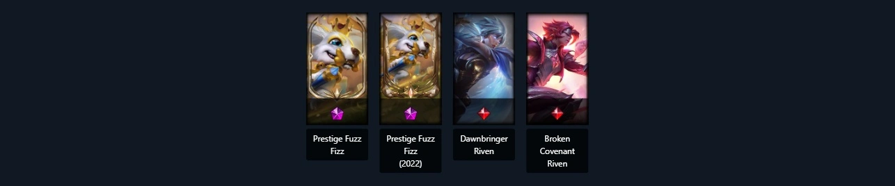 UnRanked┃20 skins┃66 Champs┃(2 Mythic) Prestige Fuzz Fizz Dawnbringer Riven Broken Covenant Riven Winterblessed Shaco Three Honors Shen iG Camille Snow Moon Varus