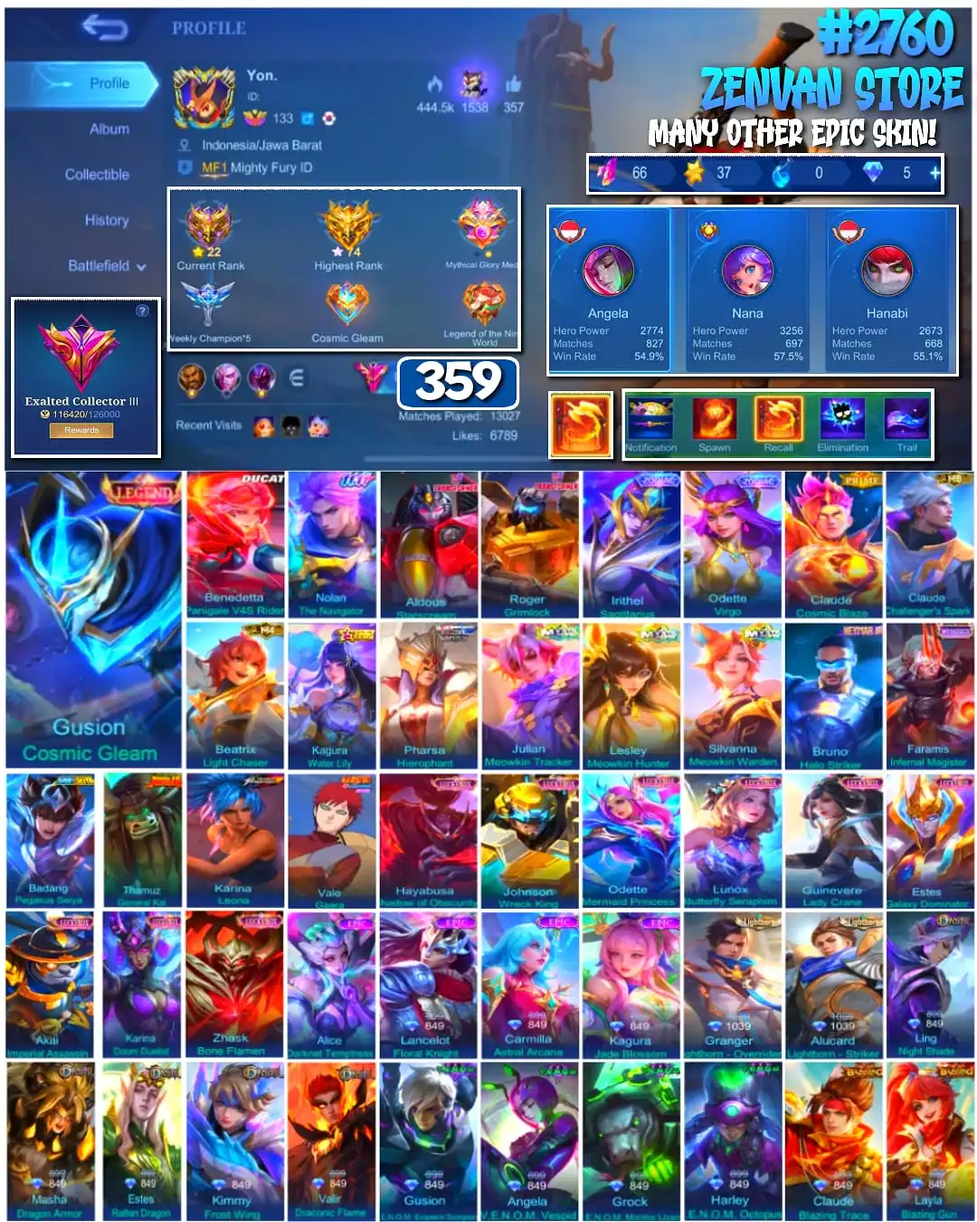 #2760 🔥 359 Skins 🔥 Legend Gusion 🔥 Ducati Benedetta 🔥 11.11 Nolan 🔥 Transformers Aldous & Roger 🔥 Prime Claude 🔥 Nyenmar Jr 🔥 Kungfu Panda Thamuz 🔥 Seint Seiya Badang 🔥 KoF Karina 🔥 Many Limited 🔥 Many Epic 🔥 Safe Account ✅