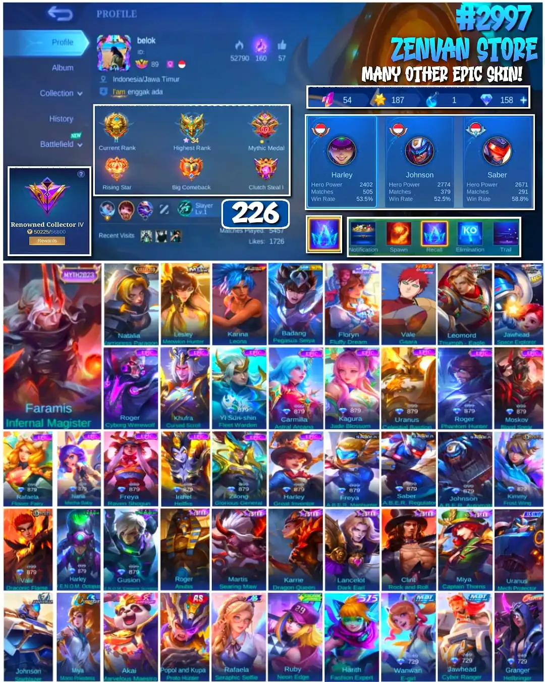 #2997 🔥 226 Skins 🔥 Collector Natalia 🔥 Seint Seiya Badang 🔥 Sanrio Floryn 🔥 KoF Karina 🔥 Many Epic 🔥 Safe Account ✅