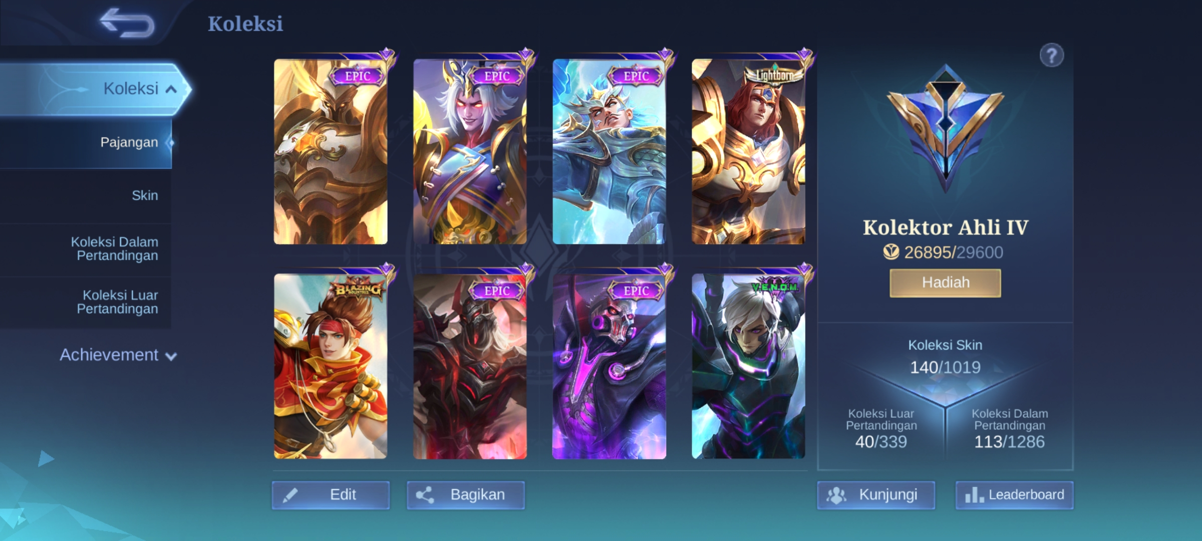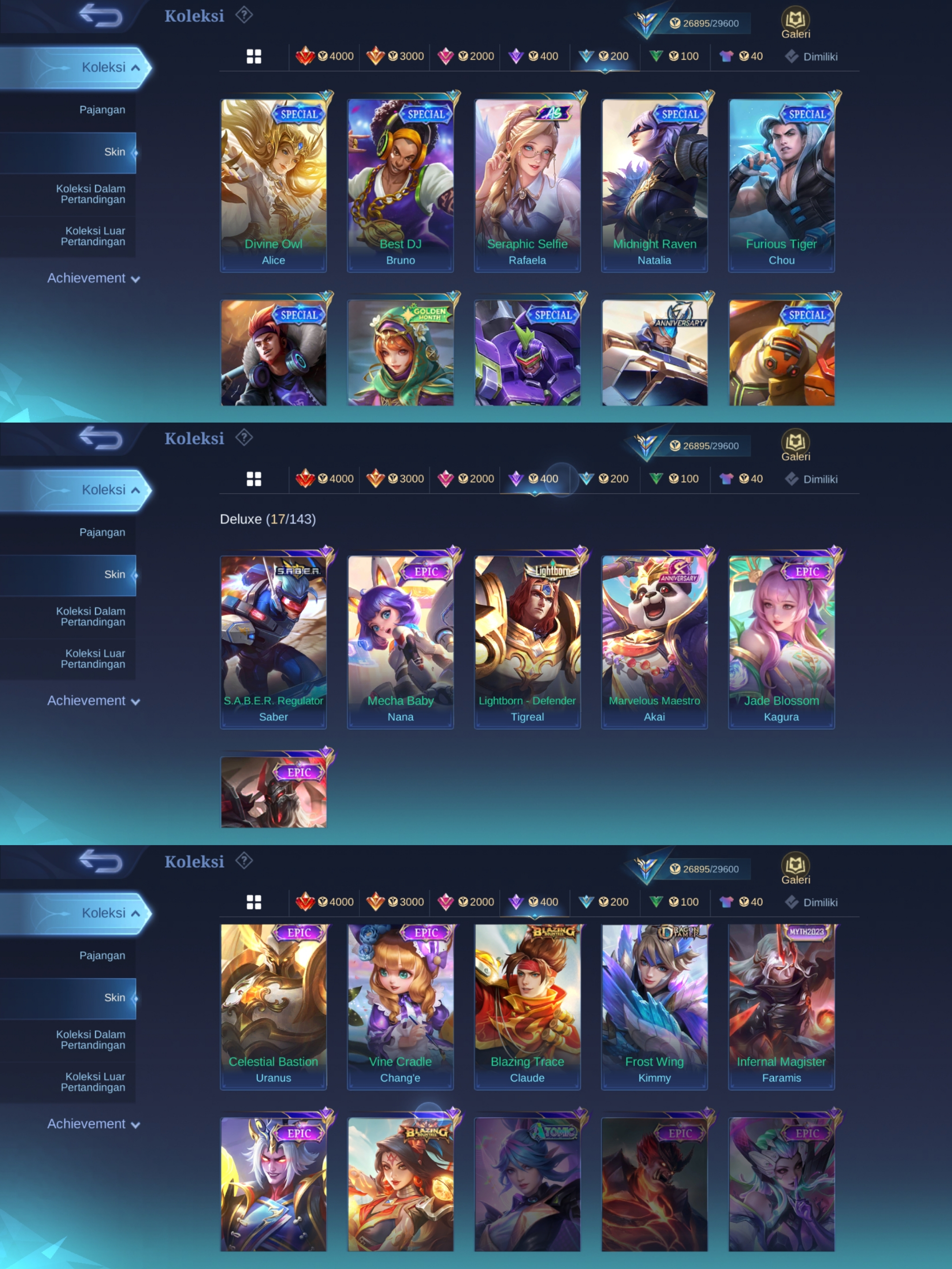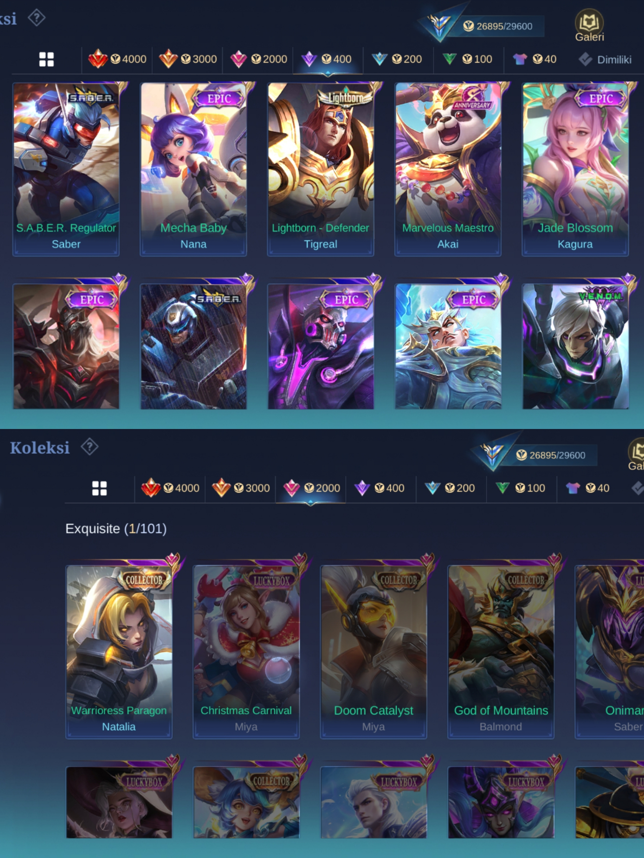 BEST MEGA DEAL✨HERO 100✨SKIN 140✨EMBLEM MAX ✨NATALIA CC✨KAGURA JADE BLOSOM ✨FARAMIS MYTH✨S.A.B.E.R 2 ✨BLAZING 2✨DRAGON KIMY✨EPIC 8✨SPECIAL 27✨STAR 5✨MSC 2✨SUMMER 2✨AS 3✨SAFE ACC✨INSTAN DELIVERY