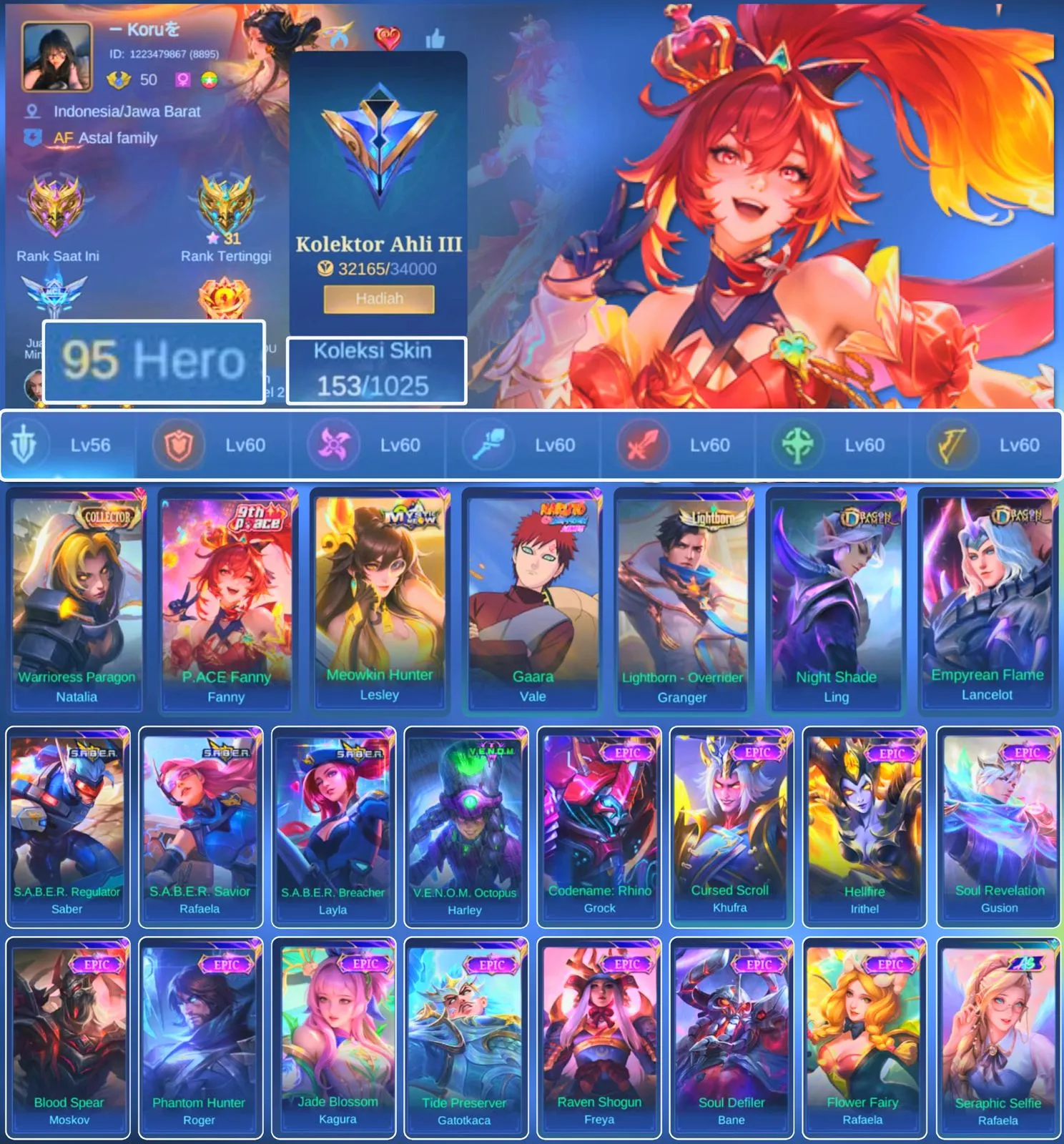 HERO 95 SKIN 153 | EMBLEM ALL MAX | COLECTOR NATALIA | PACE FANNY | EPIC GUSION| HERO GOOD | SKIN GOOD | INSTAN DELIVERY